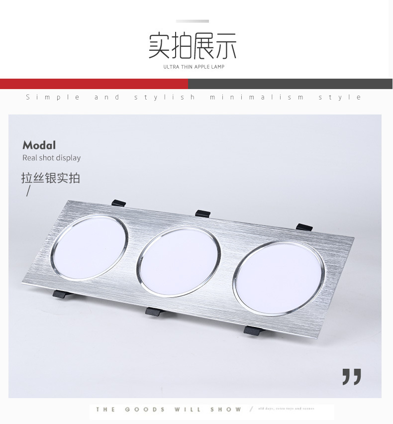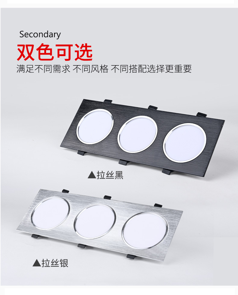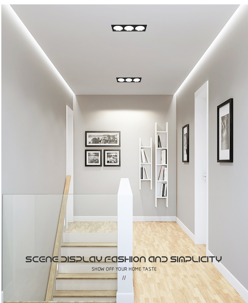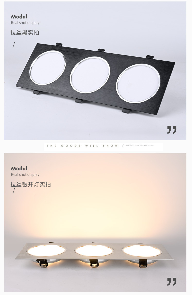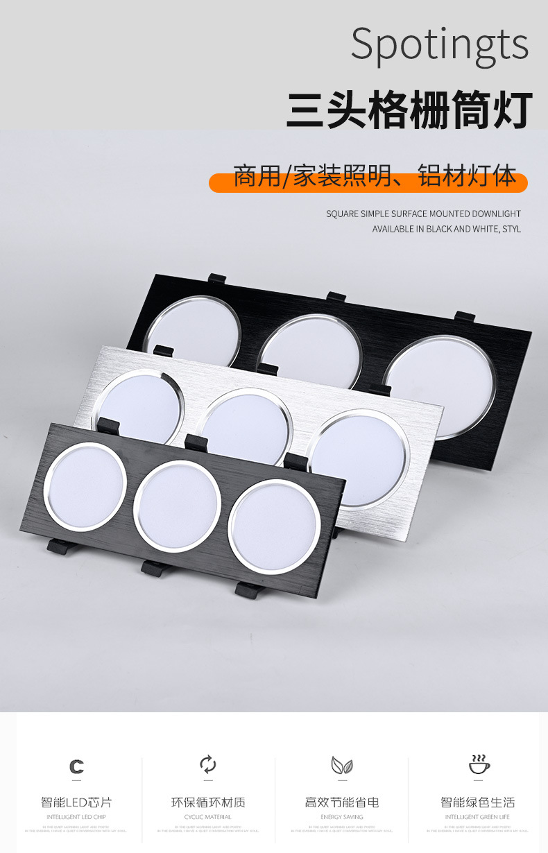 ヘッドメッシュ長方形ダウンライト天井30三頭10穴開け埋め込み型グリルライト連体黒色3斗胆灯
