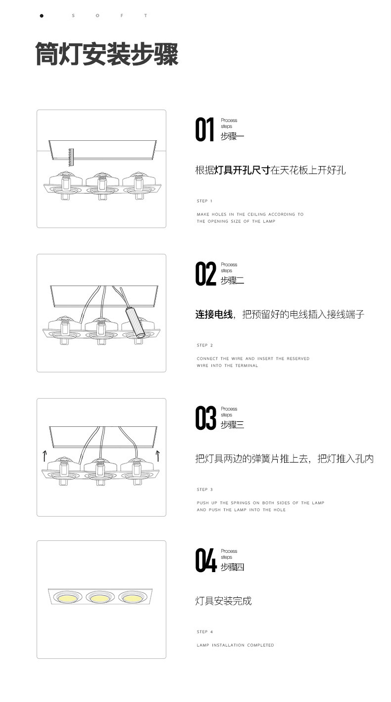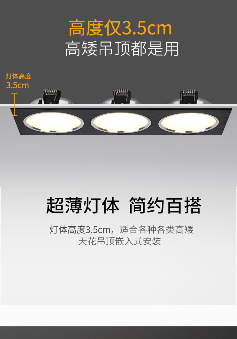 箱明装ダウンライト無主灯グリルライトLEDコブ斗胆灯LED家庭用リビング照明四頭角型