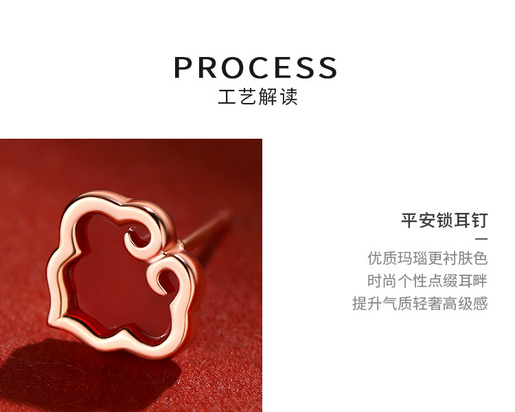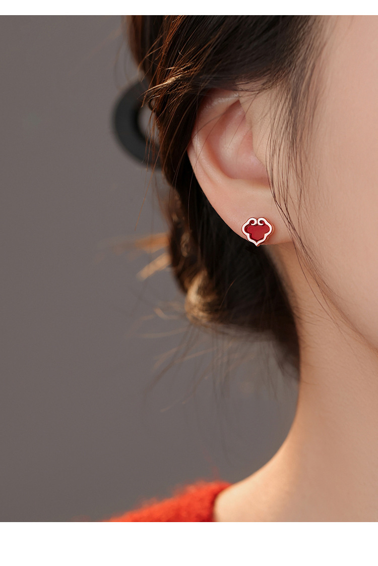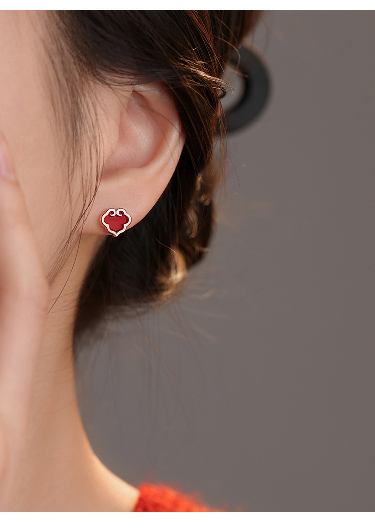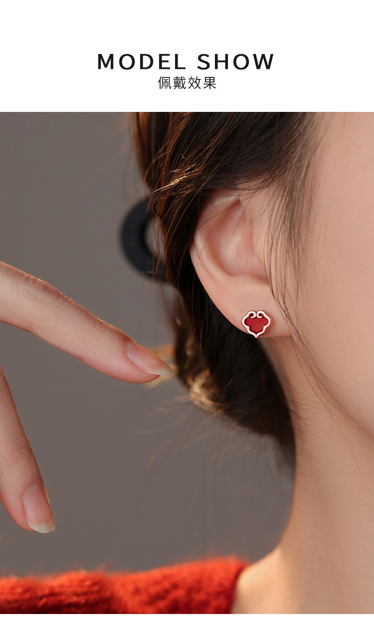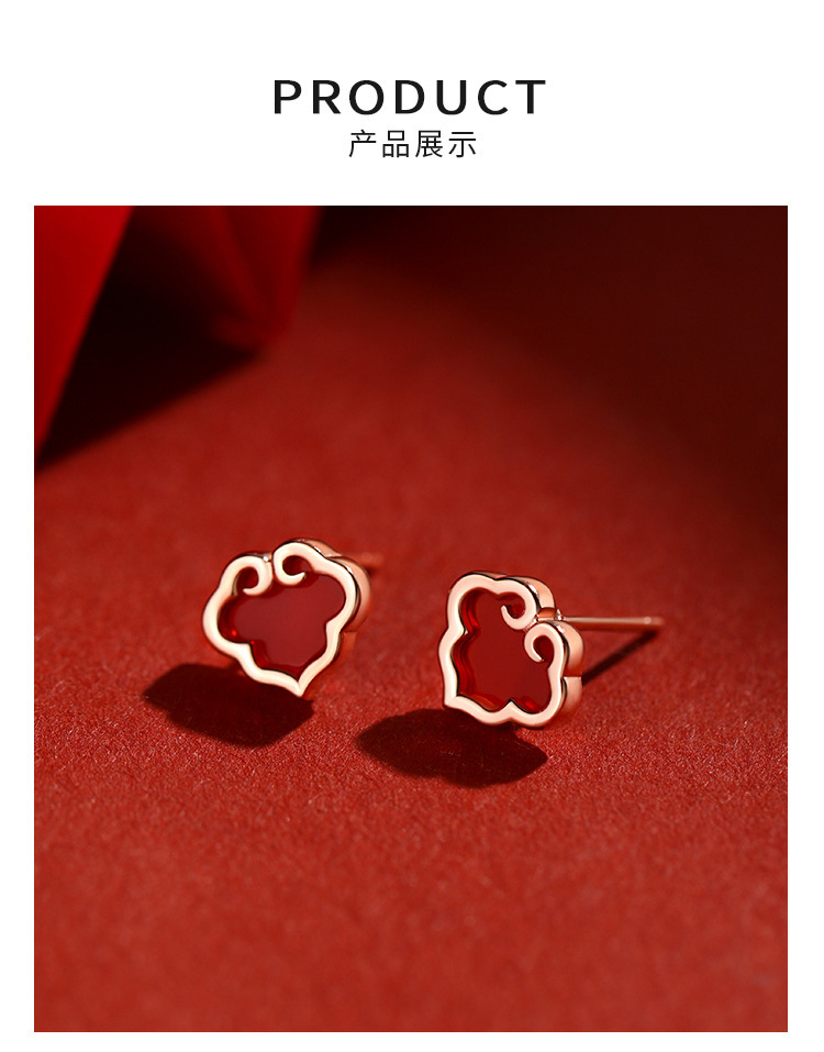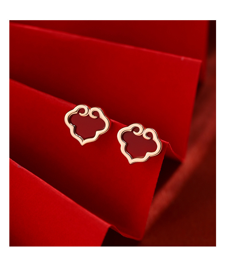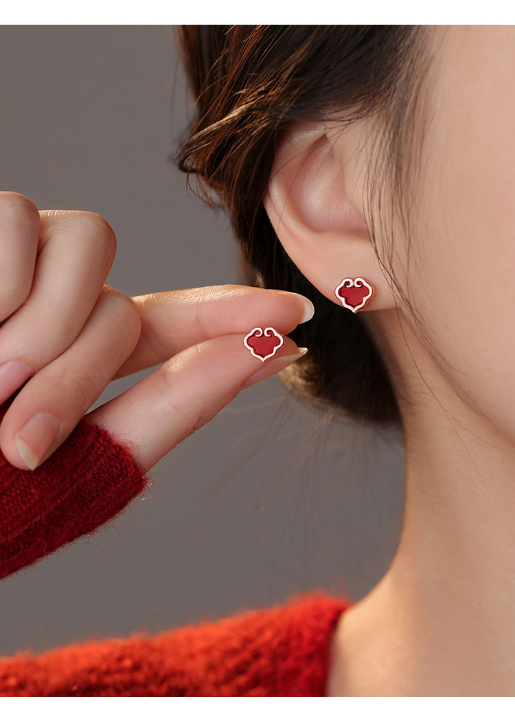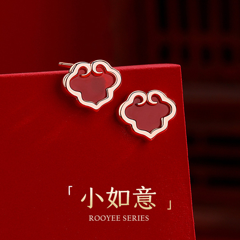 喜飾銀匠925純銀如意鎖ピアス女2024新型起爆赤いイヤリング新年プレゼント代発