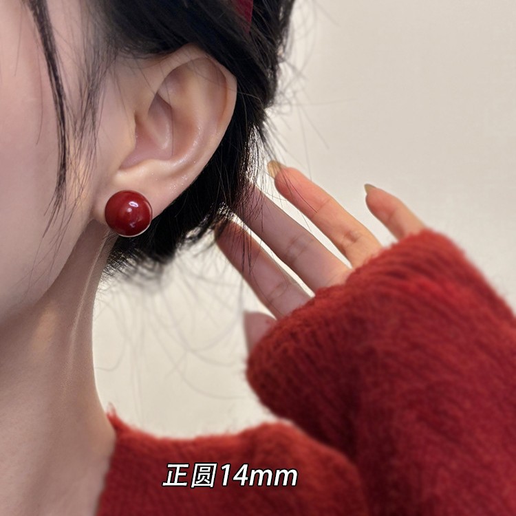 喜飾銀匠999純銀安可拉紅真珠ピアス真円高級感復古気質耳飾り代発