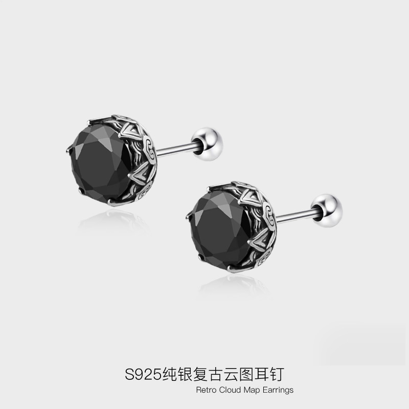 喜饰银匠 925纯银锆石螺丝耳钉男高级感痞帅风黑色复古养耳洞耳饰