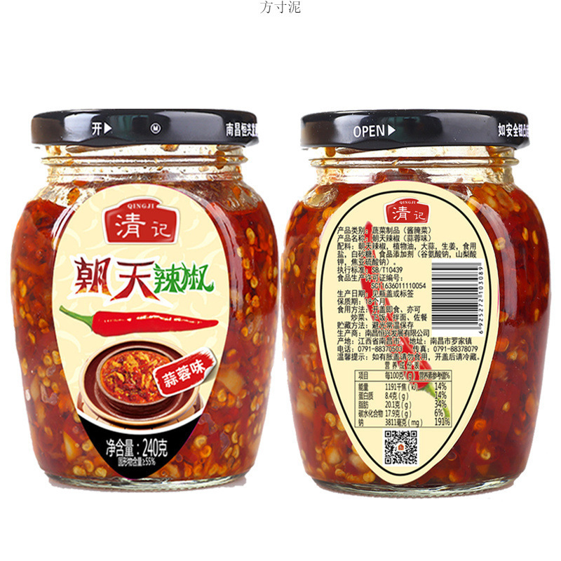 江西特産品清記朝天唐辛子ソース特辛農家にんにく蓉豆豊小魚子多味2瓶工場