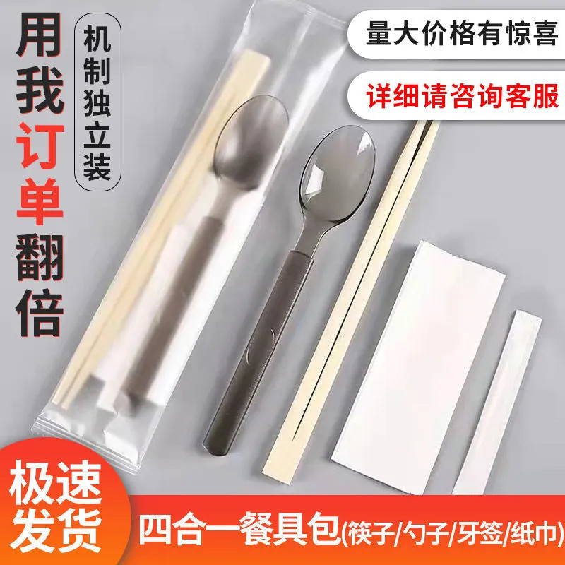 食品級の出前食器四合一は商用プラスチックアメリカ箸を厚くして使い捨てスプーンを四点セット梱包した