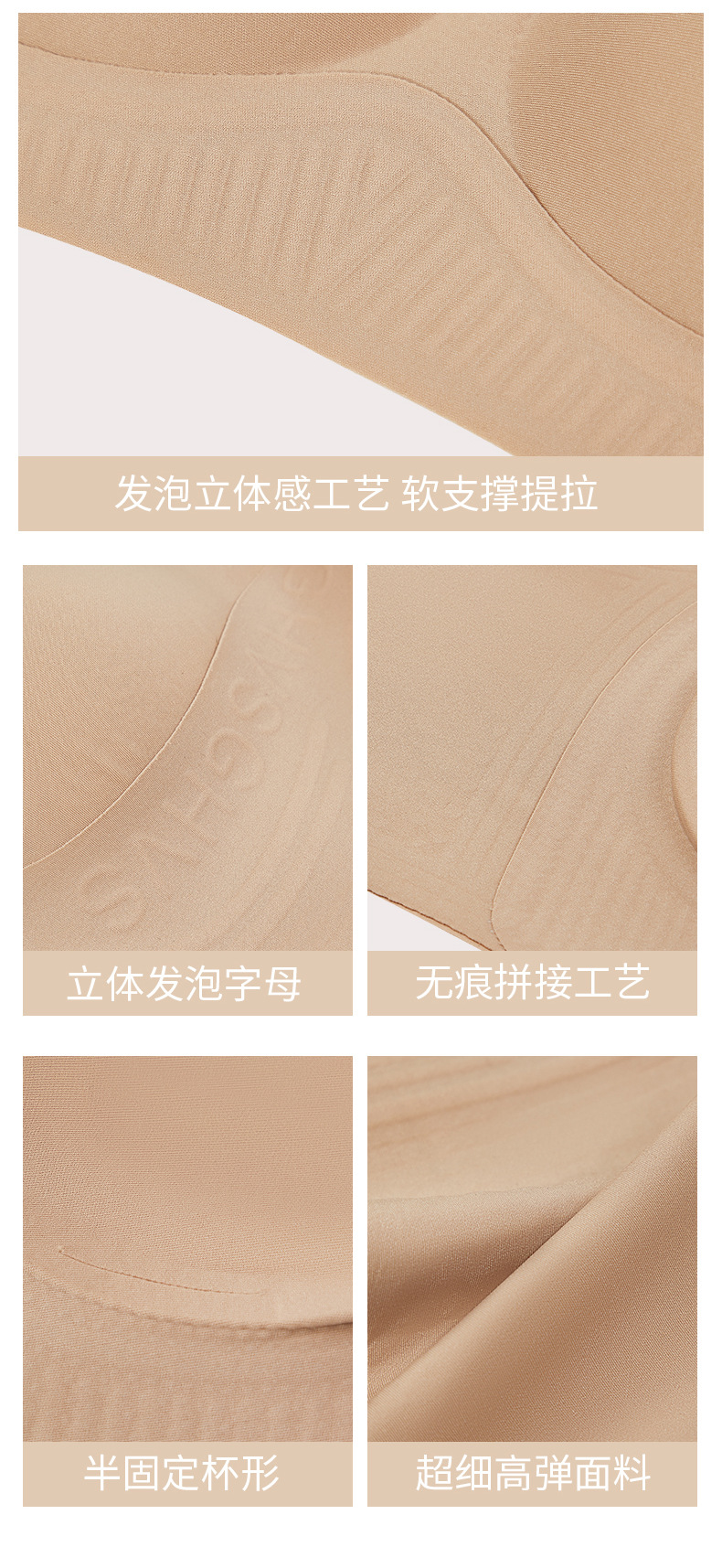 粉底液隐形无痕大胸显小内衣女细闪肩带美背聚拢无钢圈背心式文胸