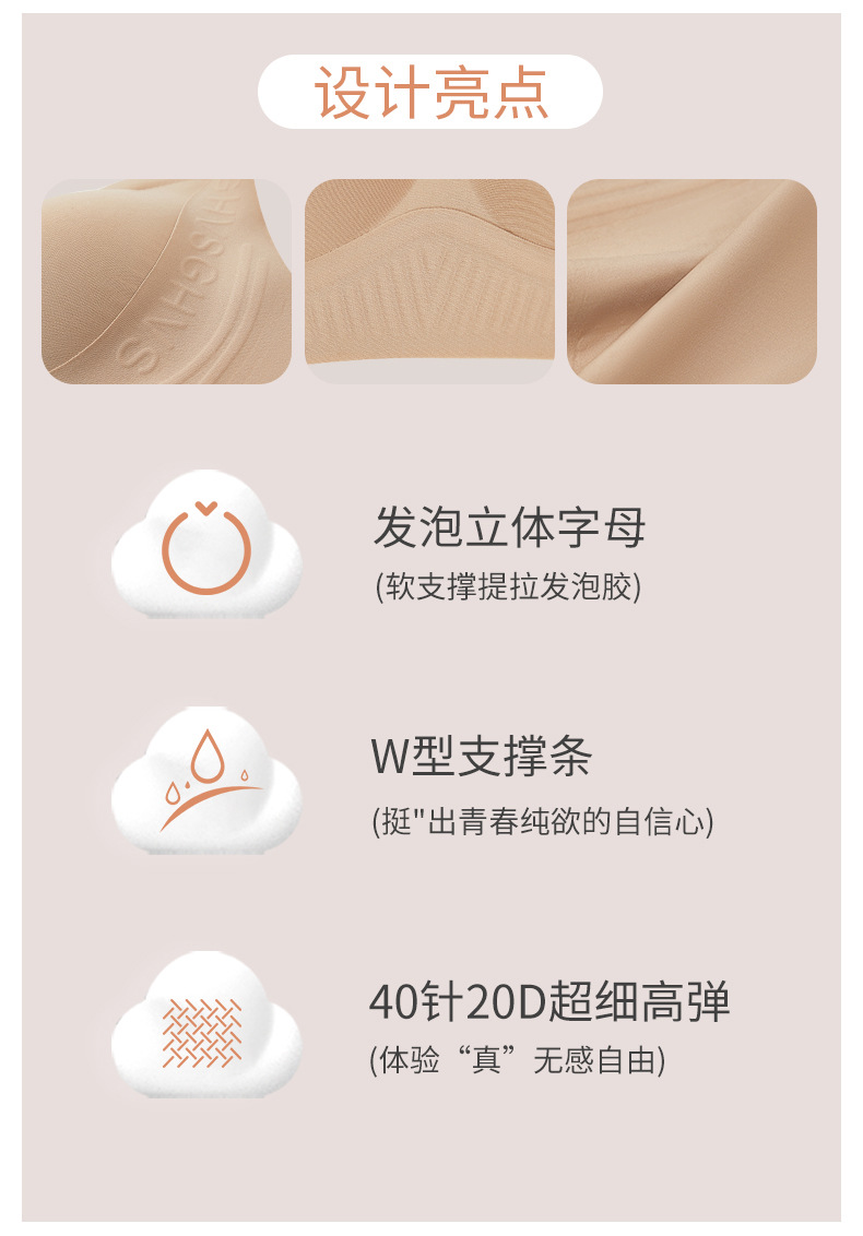 超薄ゼリーソフトサポート無痕下着女性抗菌光沢無鋼輪ブラジャー