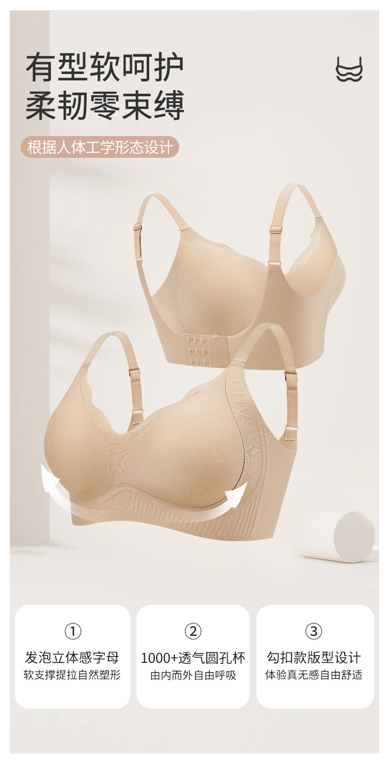 春夏の新型快適美背ソフトサポート無痕ステルス下着女性無鋼輪は胸の裸感を巻いています。