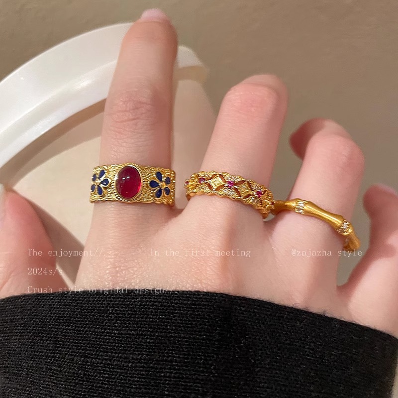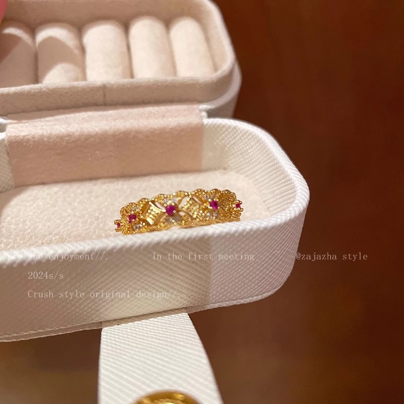 フランスの軽豪華なデザイナーの金はジルコンの指輪を入れてネットの赤い重工業が光る多層の人差し指の指輪の女性を入れて調節することができます。