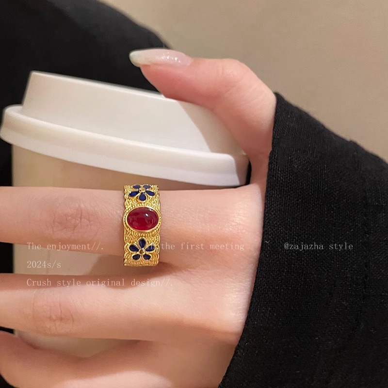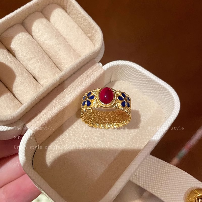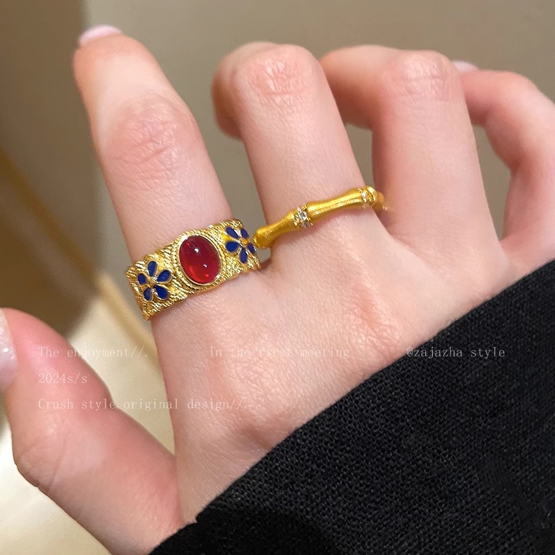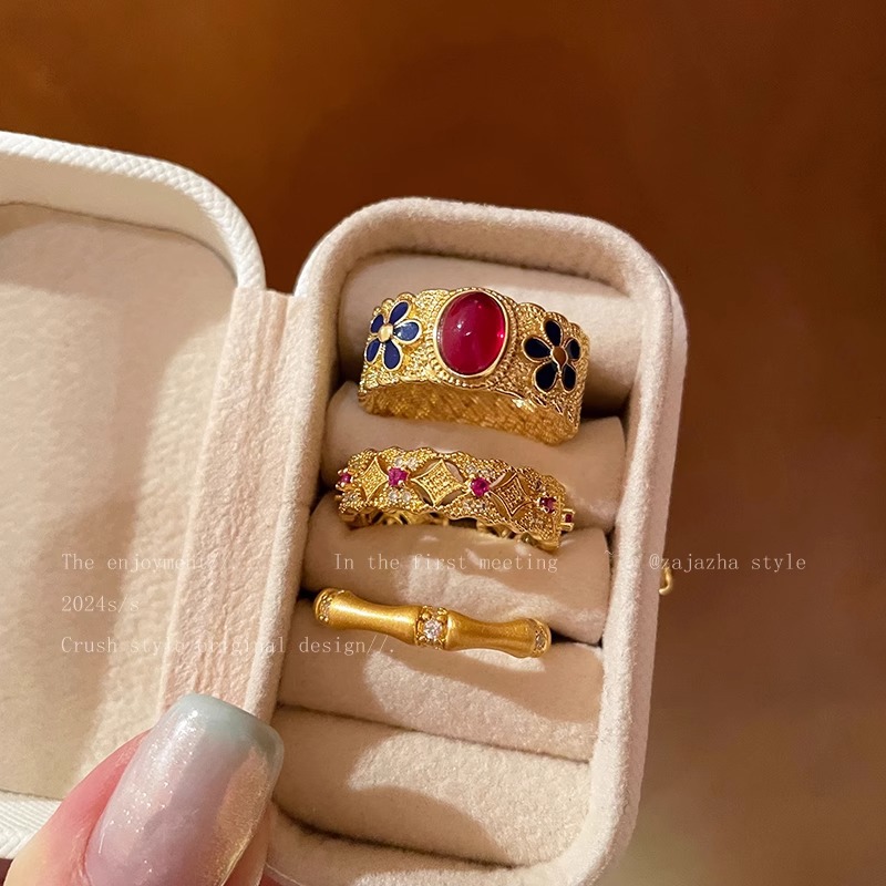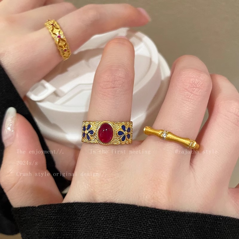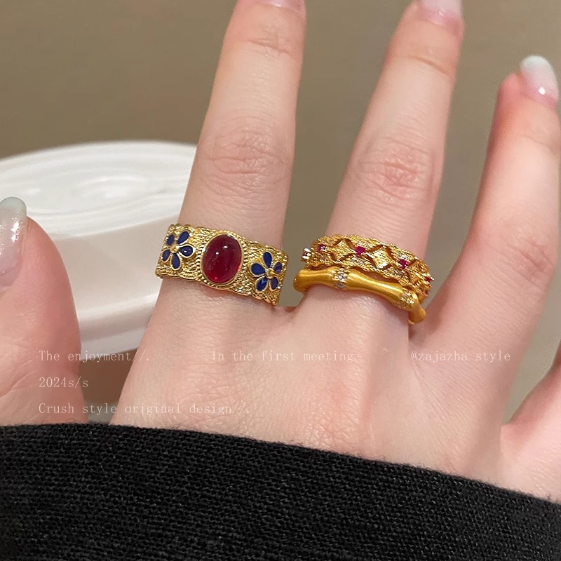 ヴィンテージ中古紫荊花満天星軽豪華高級感宮廷風開口指環復古指環