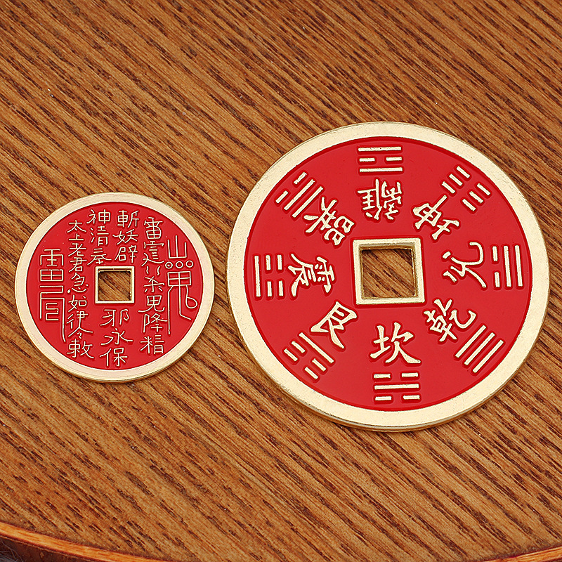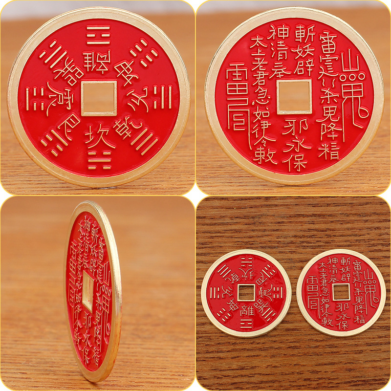 古風銭復古合金工芸品朱砂紅は古銭山鬼に似せてお金をかけて中国式の八卦のお金のペンダントを飾ります。