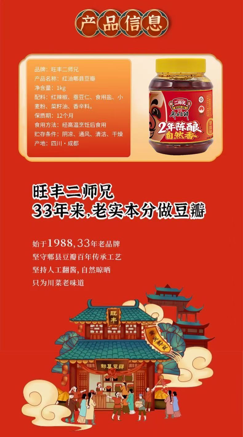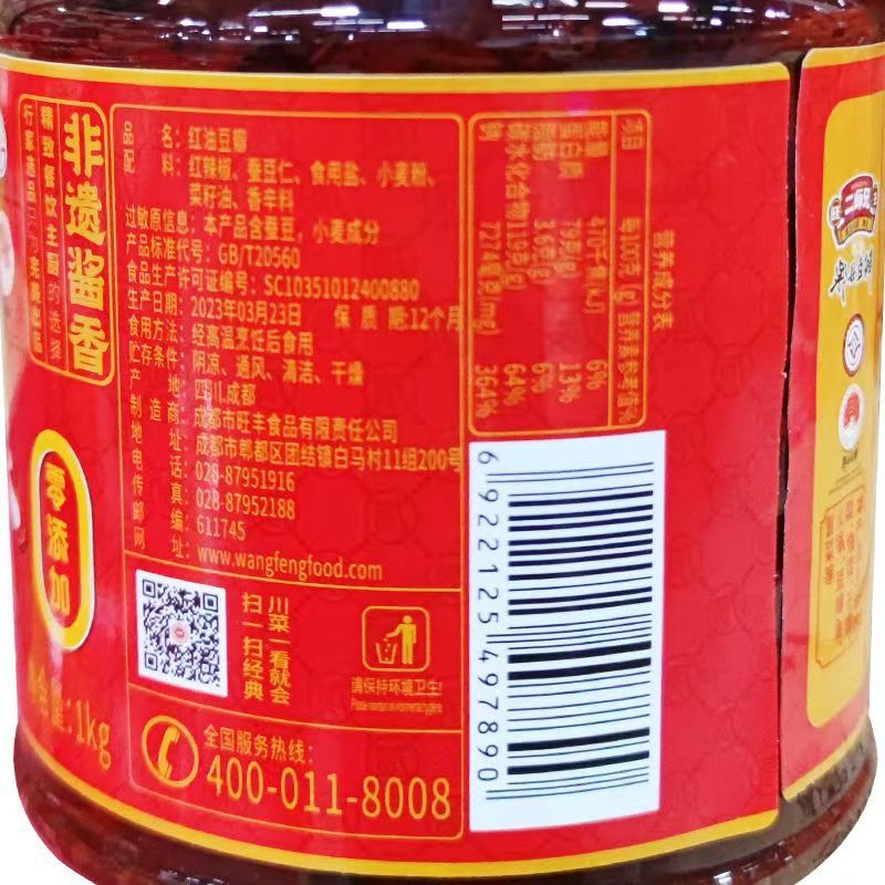 四川名物旺豊【無形文化遺産】郫県紅油豆板醤2年熟成自然香川味炒菜豆板醤