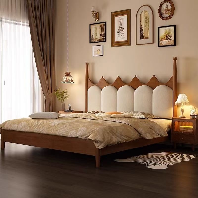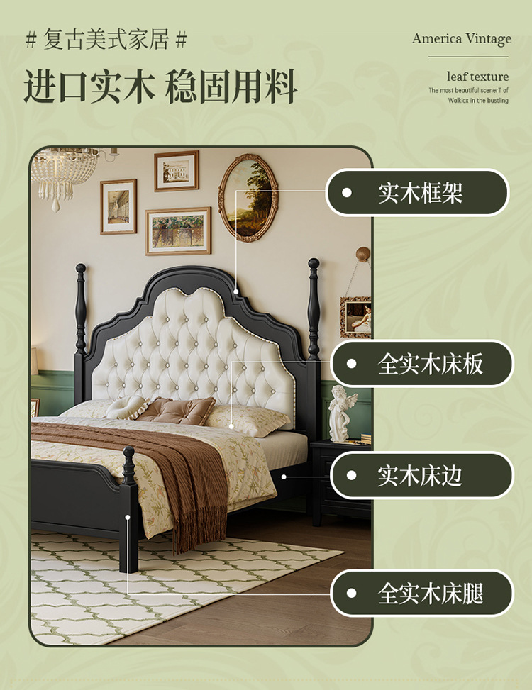 法式床复古床软包安娜床实木主卧室胡桃木色1.8米美式中古风婚床