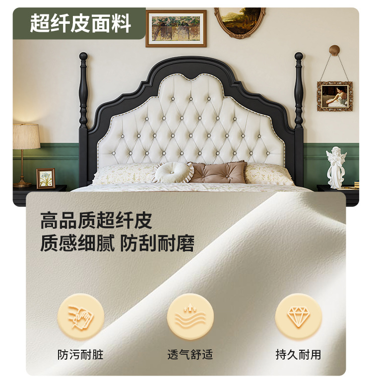法式复古床1米8双人床主卧小户型全实木美式家具中古风奶油软包床