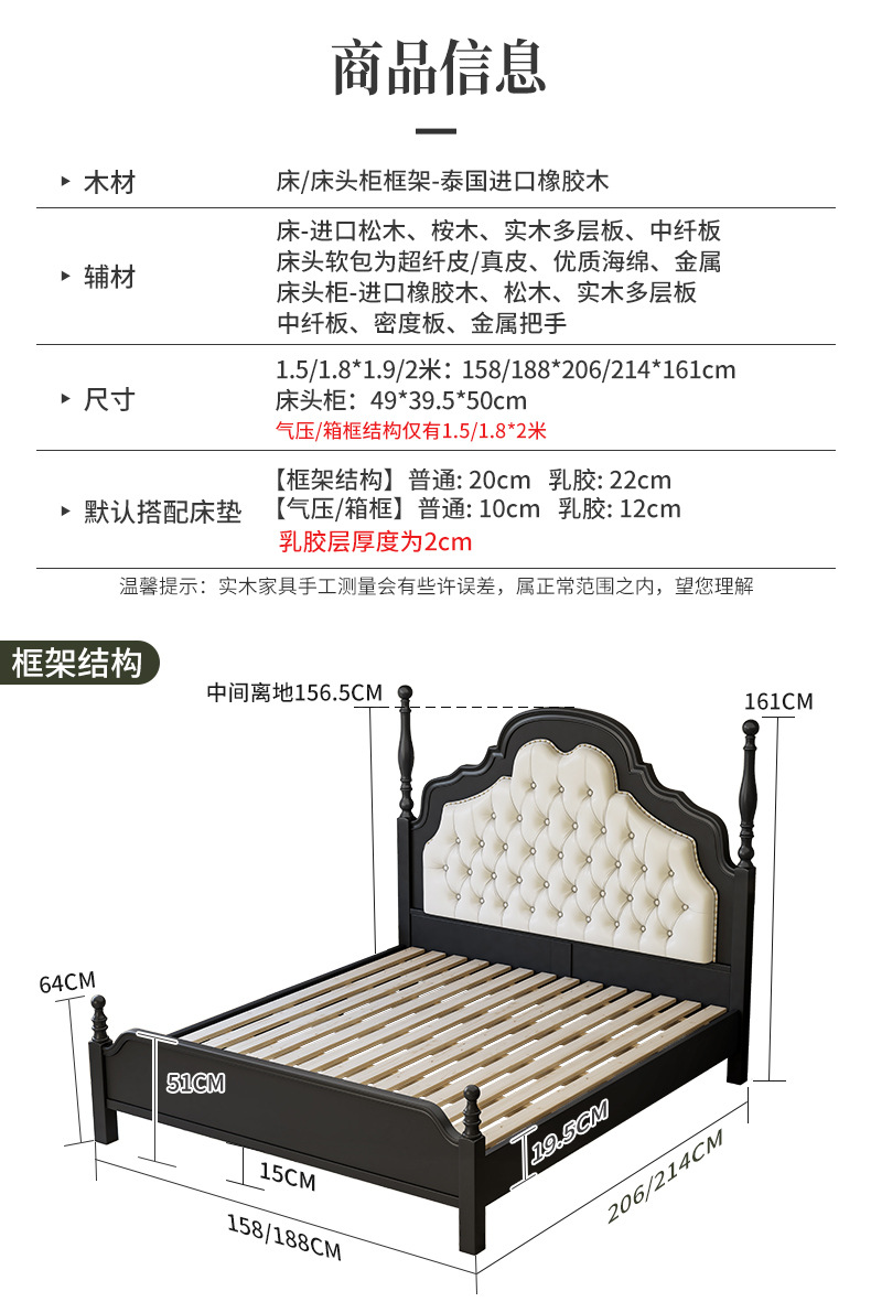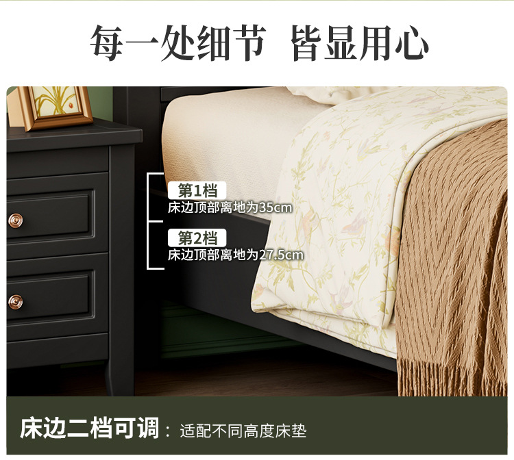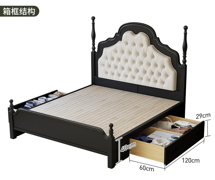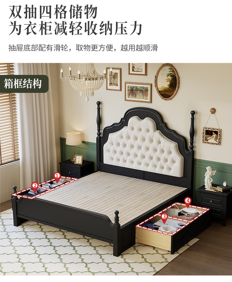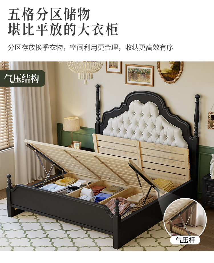 法式安娜实木床家用主卧室可储物大床双人床豪华高档网红新款婚床
