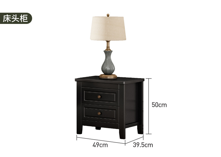 中古風実木ベッド黒ベッド1.5m 1.8mツインベッドソフトバッグ現代シンプルレトロフランスベッド主臥婚