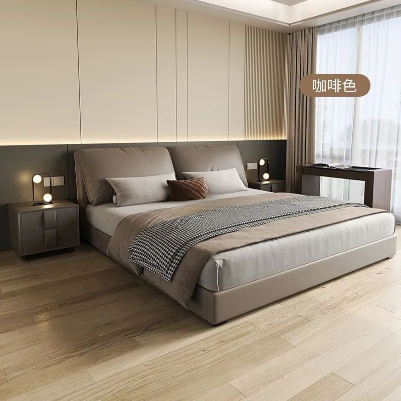 奶油风耳朵科技布艺床1.8米现代简约双人主卧小户型软包婚床