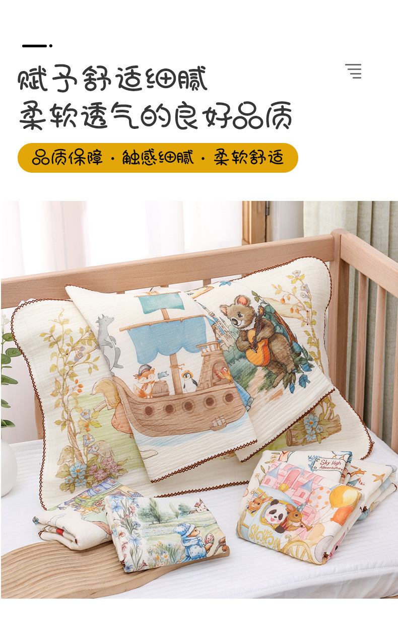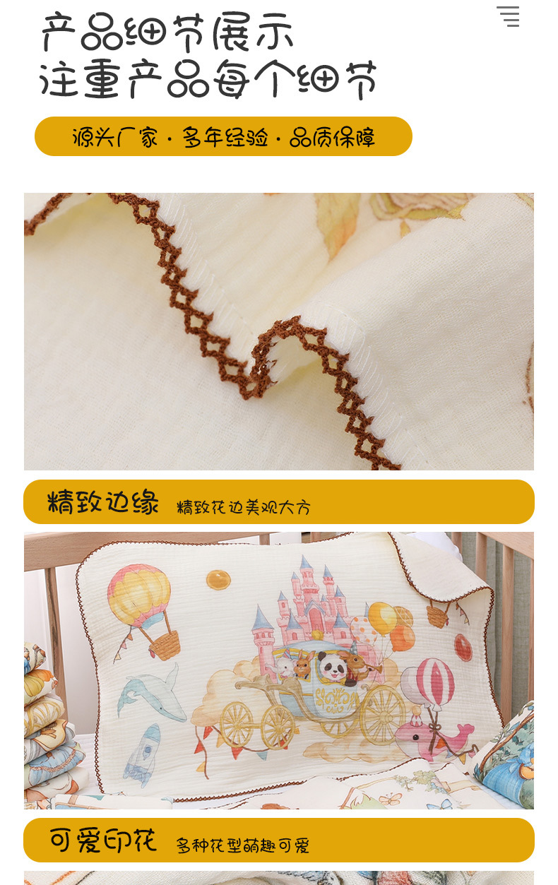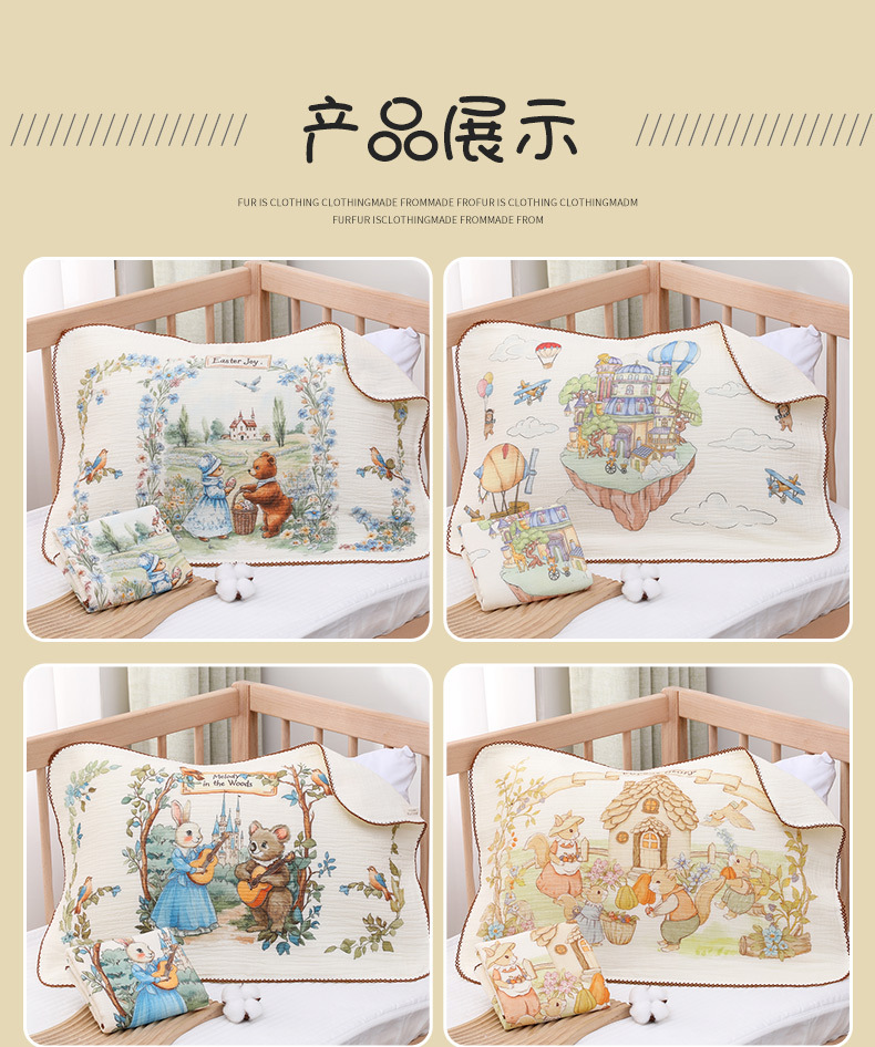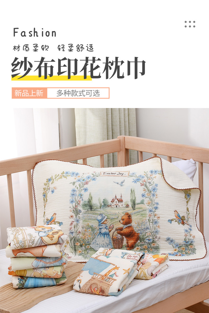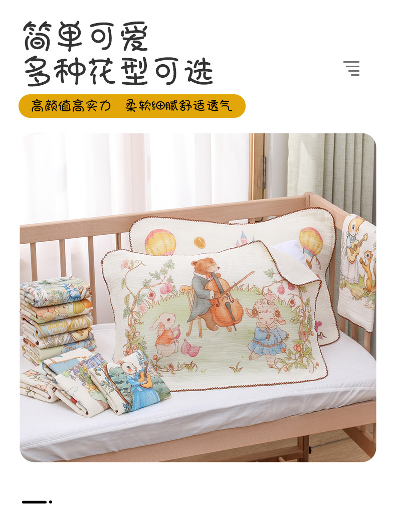 工場直販子供用ガーゼ枕カバー純綿タイプAベビー吸汗性四季通用枕カバー幼稚園ガーゼタオル
