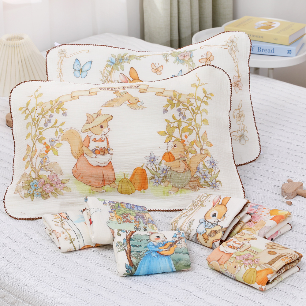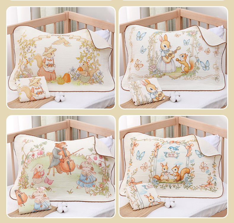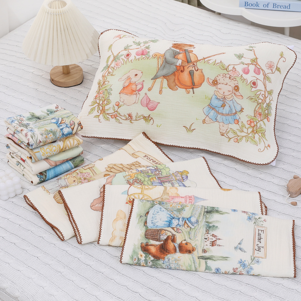 子供用デジタルプリント漫画枕タオル赤ちゃんガーゼ綿枕カバー柔らかい快適吸汗通気性赤ちゃん枕カバー