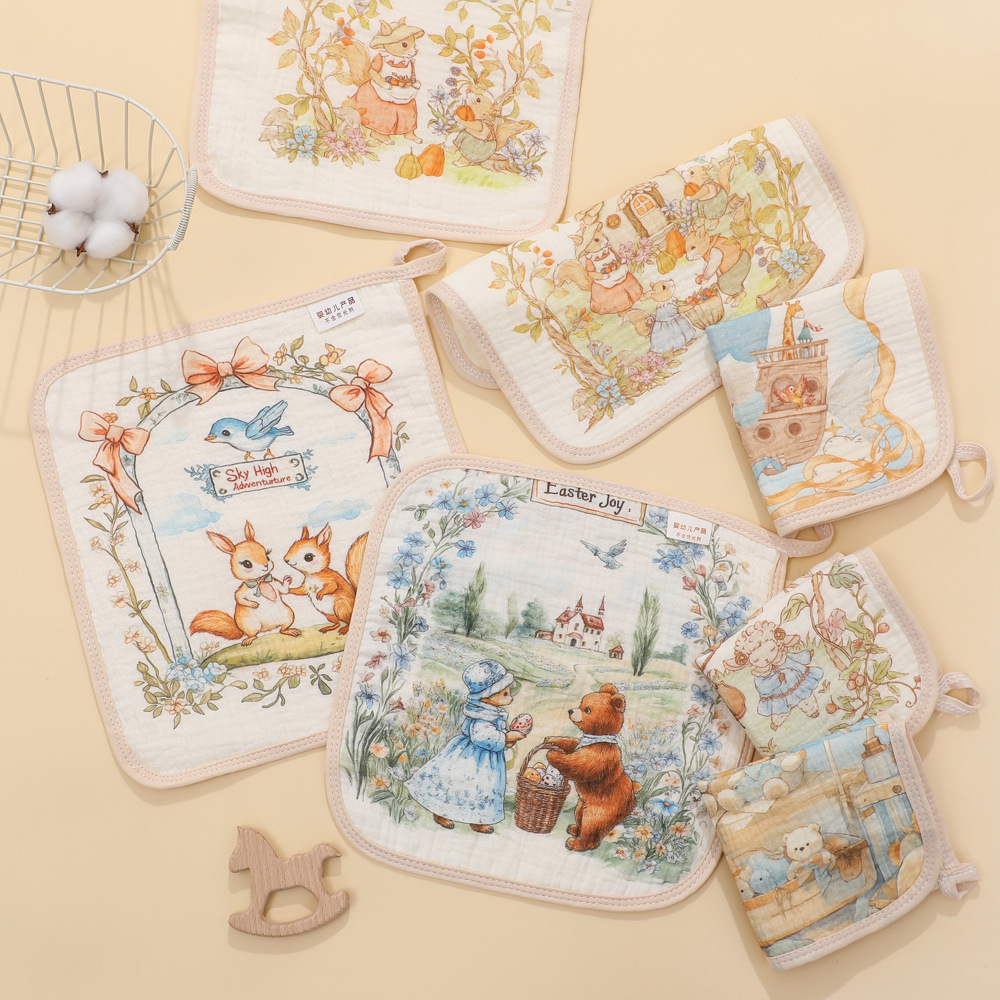 かわいい柄のベビー用フェイスタオル、吸水性が高く柔らかい、プリント柄の漫画風ハンカチ、よだれかけ、小さなタオル、卸売