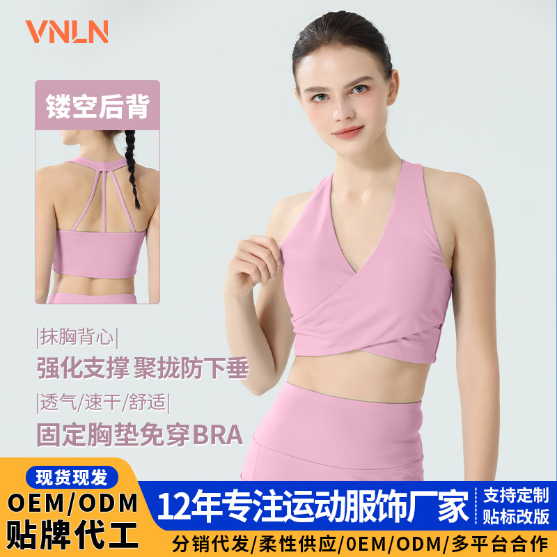 运动外穿内衣带胸垫 瑜伽服背心上衣美背交叉绑带训练运动健身服