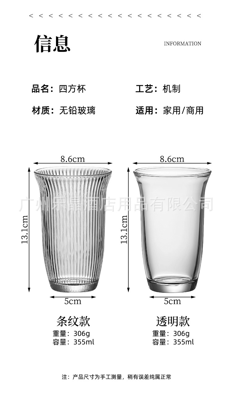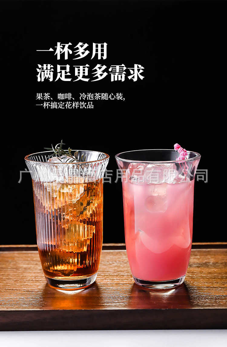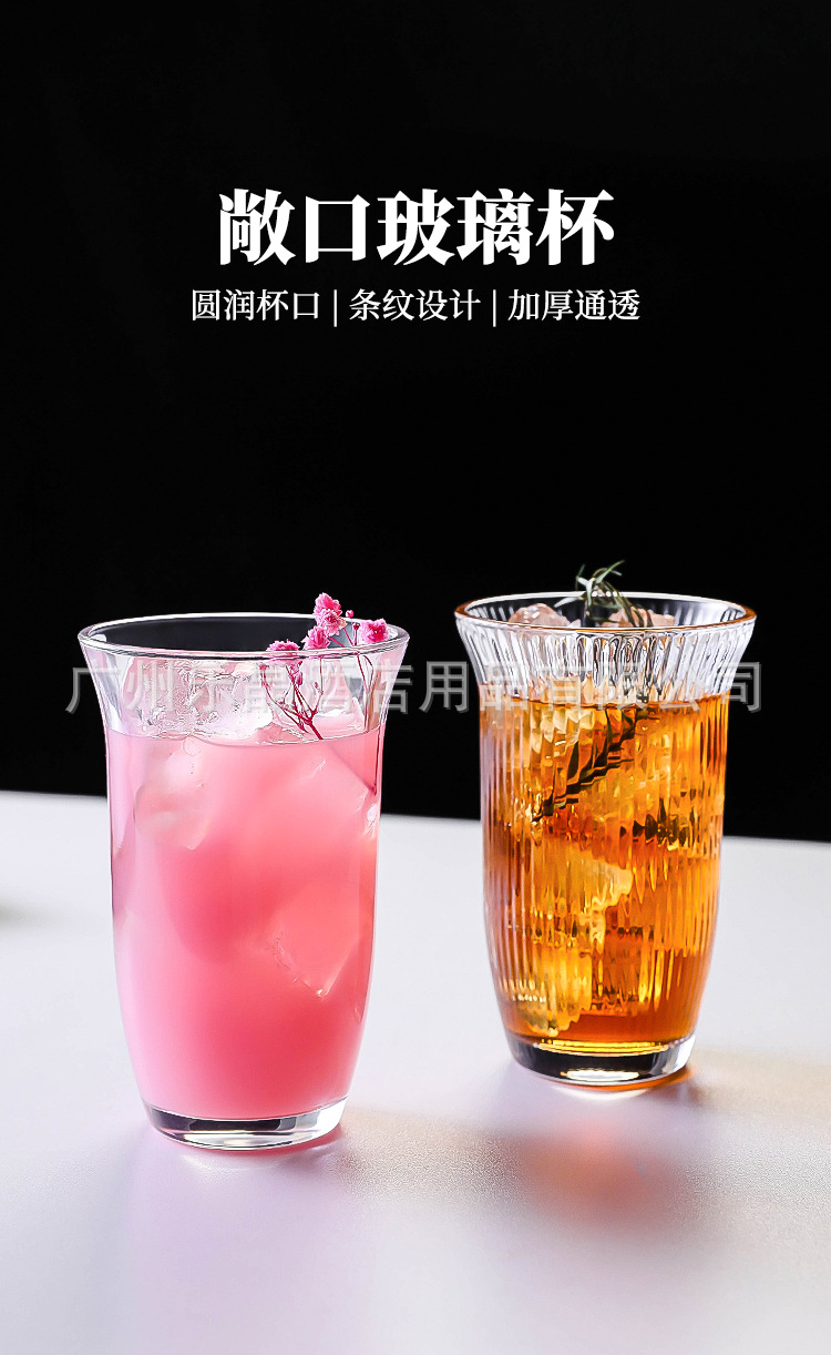 家庭用ジュースカップガラス透明ミルクティーカップ商用大型飲料カップコーラカップアイスクリームカップ女ins風