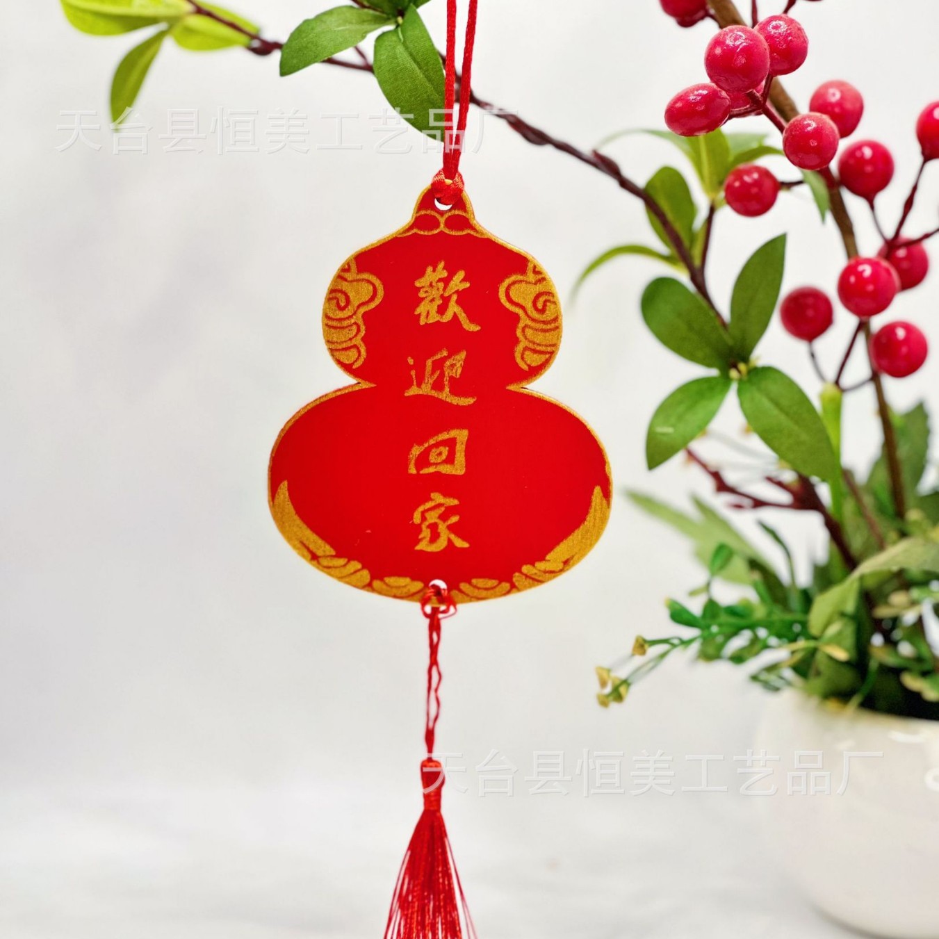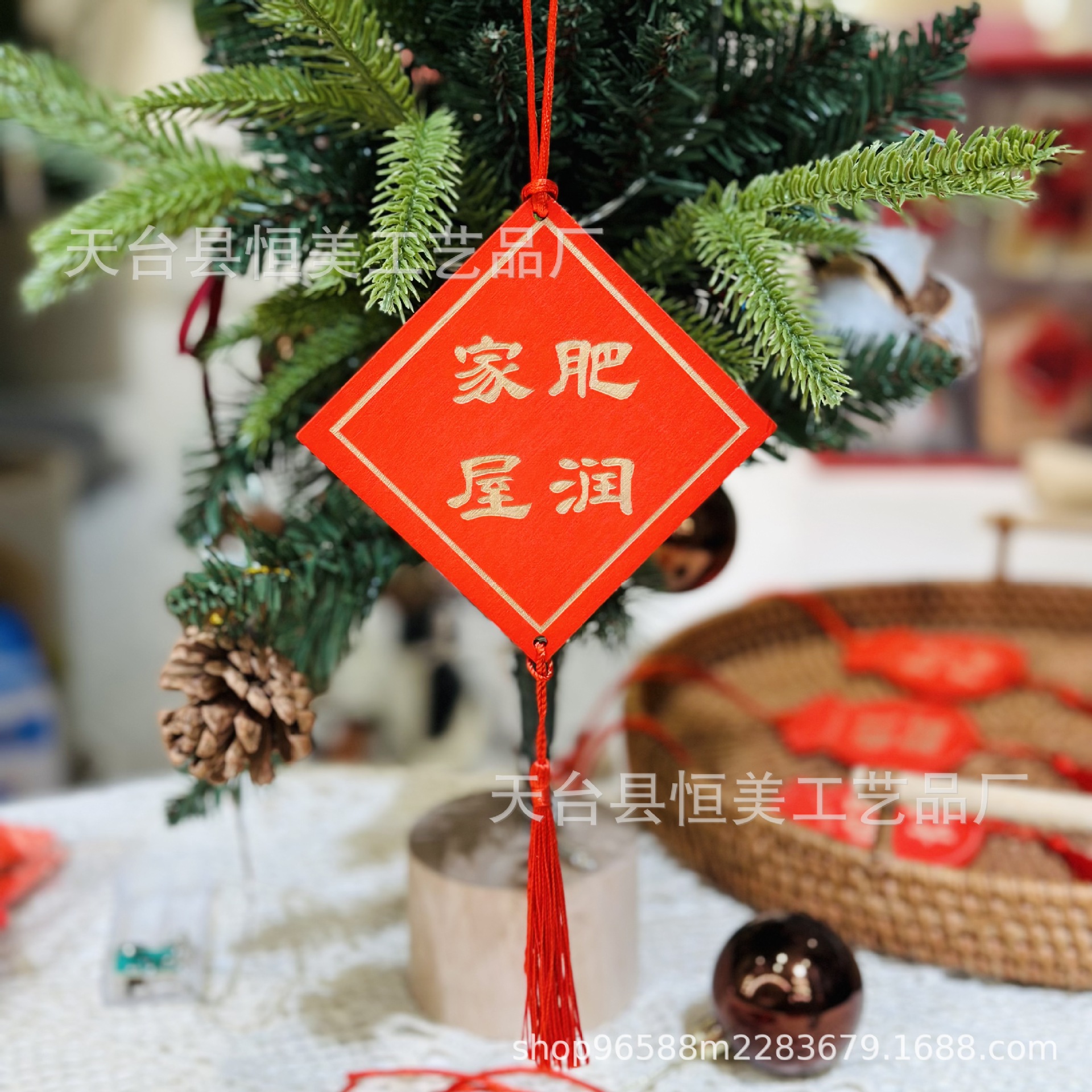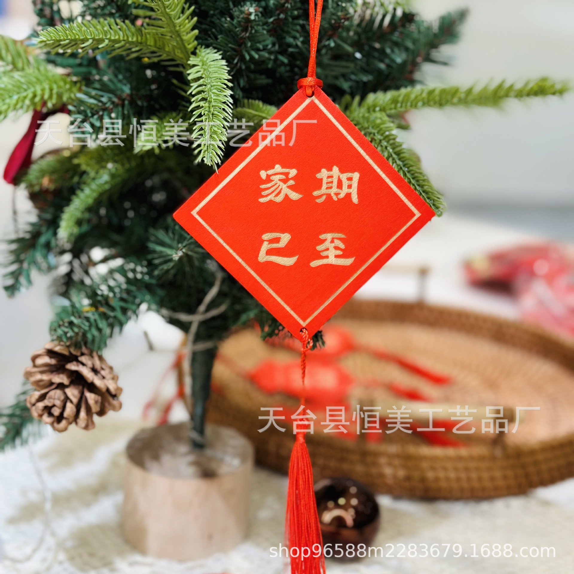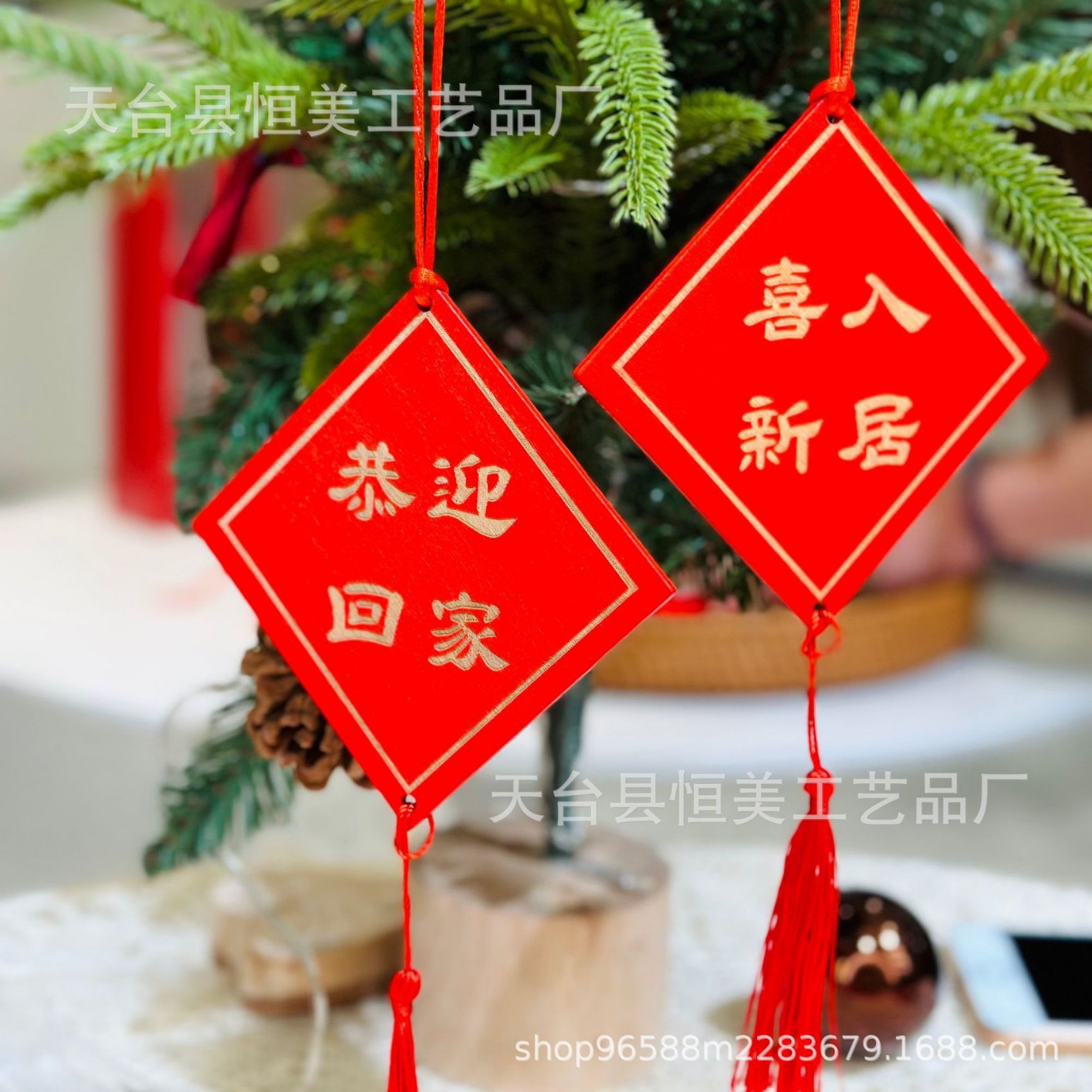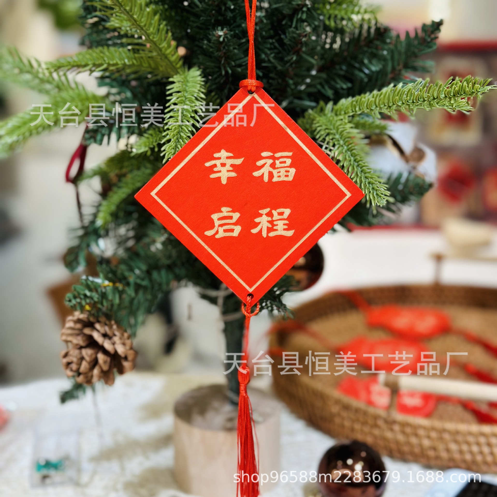 赤いお祝いの看板は願い事の札を掛けて、家庭の装飾の鈴を掛けて、木の装飾の風鈴を掛けます。