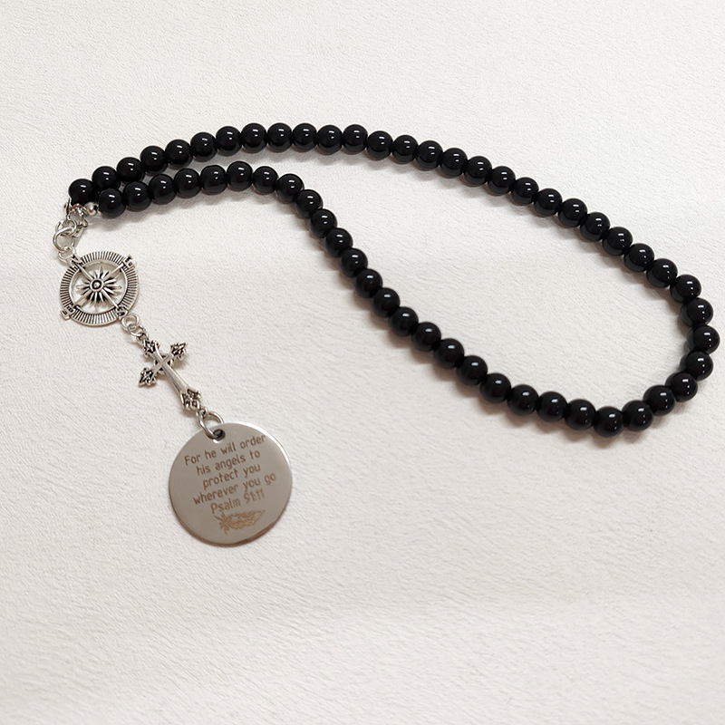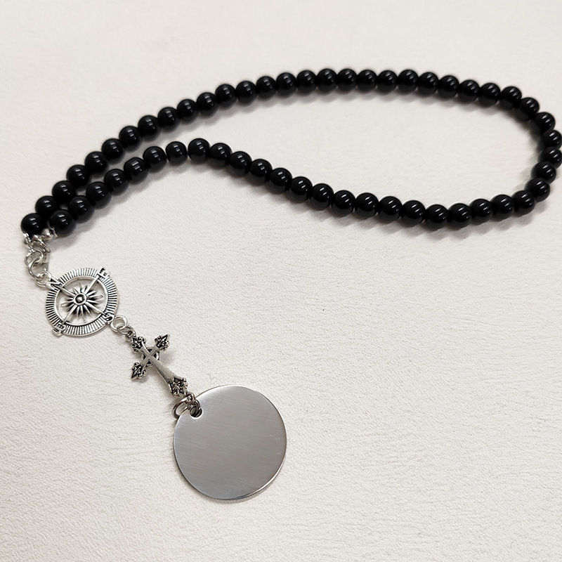 黑曜石挂件不锈钢指南针十字吊坠圆牌刻字挂件黑曜石十字架挂件
