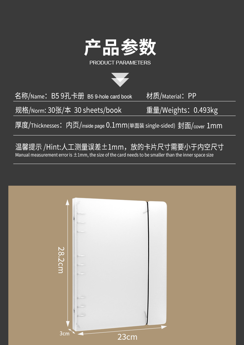 B 5高清透明ルーズリーフ資料冊9穴九穴生字カード8寸収納帳ルーズリーフPPストラップアルバム現物