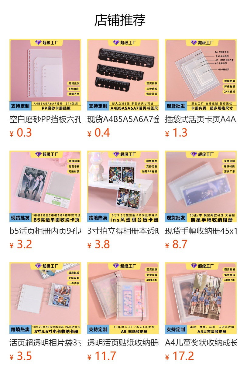 ポケット式ルーズリーフカードページA4A5A7M 0.25kgグリッド4グリッド6グリッド9グリッド収納フォトアルバム透明PPカードアルバム内ページ