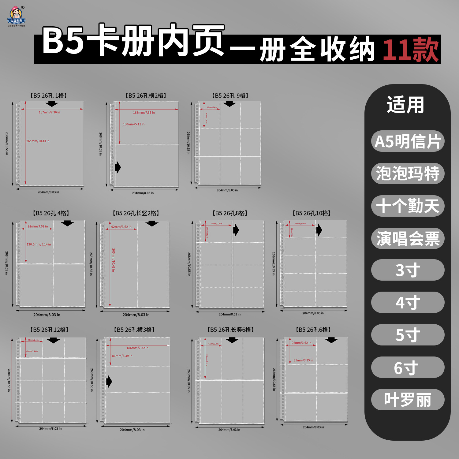 大b5卡册拍立得相册卡片收纳册内页活页镭射票票根3456寸20丝单面