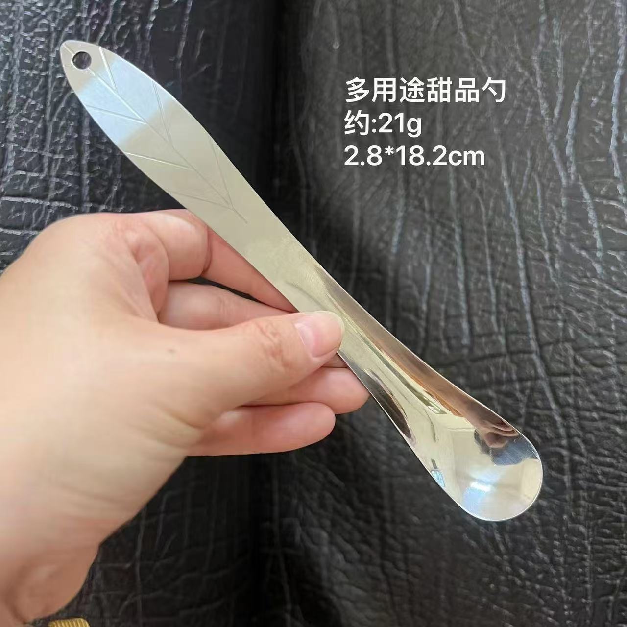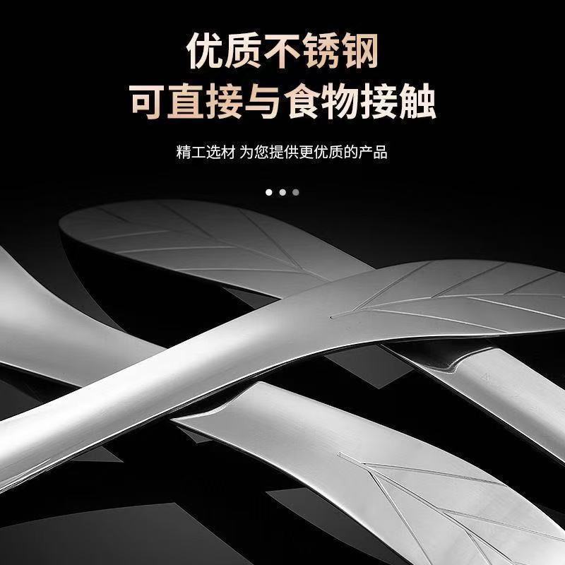 不锈钢甜品勺子咖啡搅拌勺树叶纹勺冰淇淋长柄挖勺切水果器勺饺