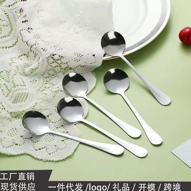 加厚不锈钢家用平底小勺子长柄喝汤西瓜勺食堂学生吃饭勺平底旺勺