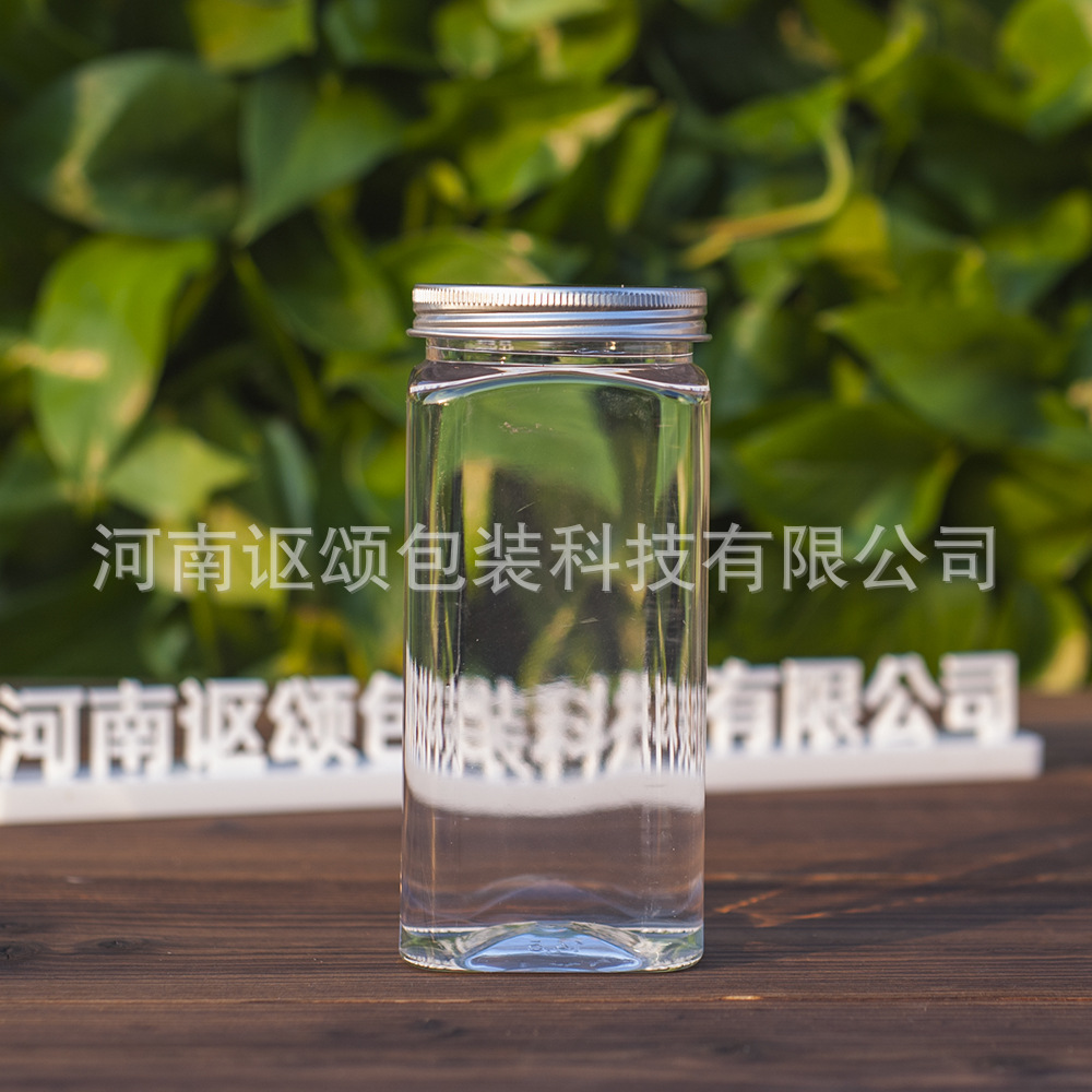 四角いボトルpet正方形のプラスチックボトル透明アルミキャップ食品缶正方形の手持ちボトルシール厚い