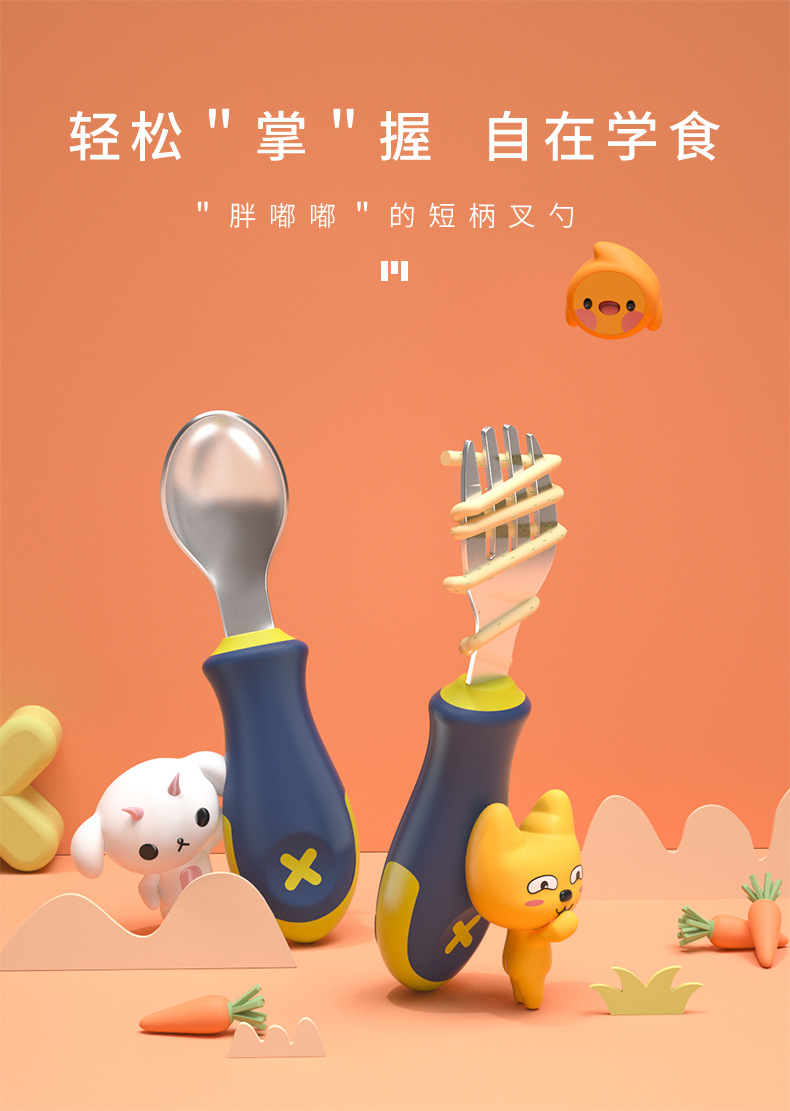 良い人形の子供のフォークのスプーンのスーツの赤ちゃんの食事の学習の短い柄の訓練のスプーン
