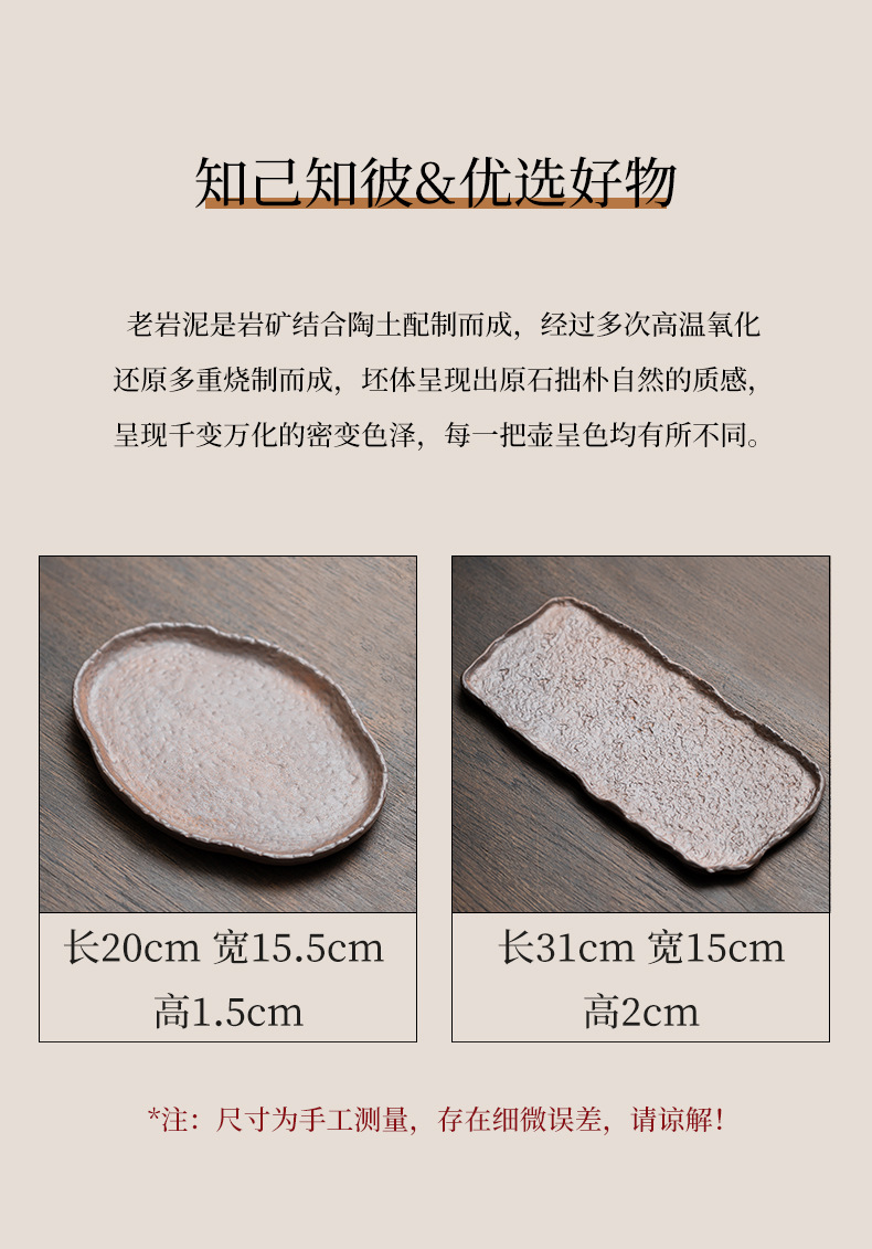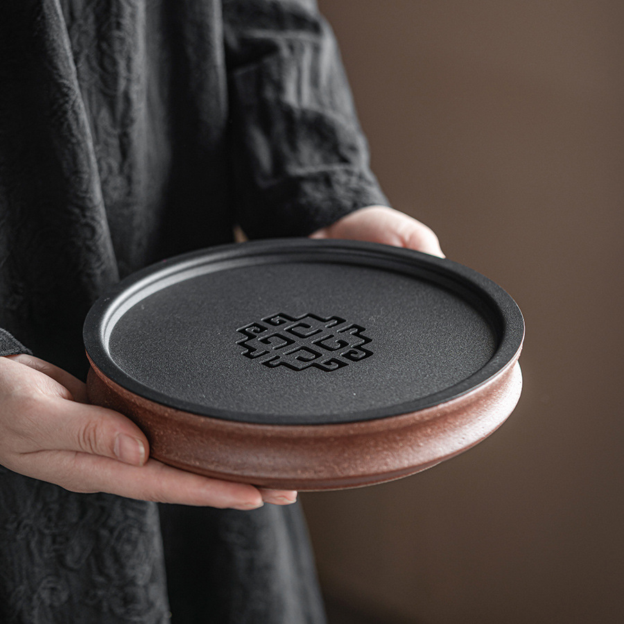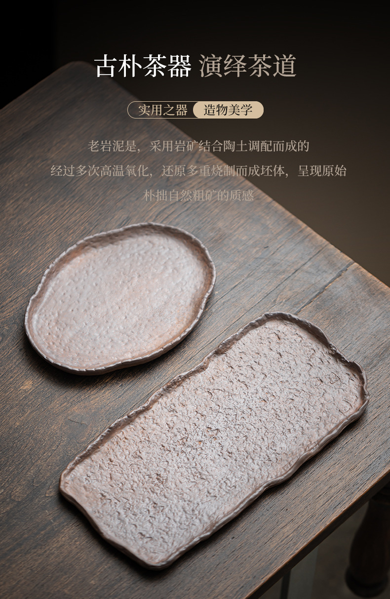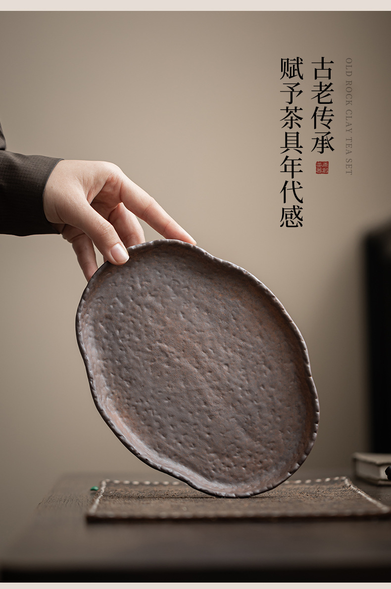 古い岩の泥の粗い陶器のお茶の皿の円形の四角形の乾いた泡の皿のレトロな家庭用の小さいお茶の台の壺はティーポットを支えて工夫の茶器を頼みます。