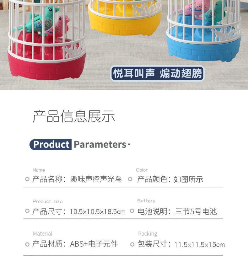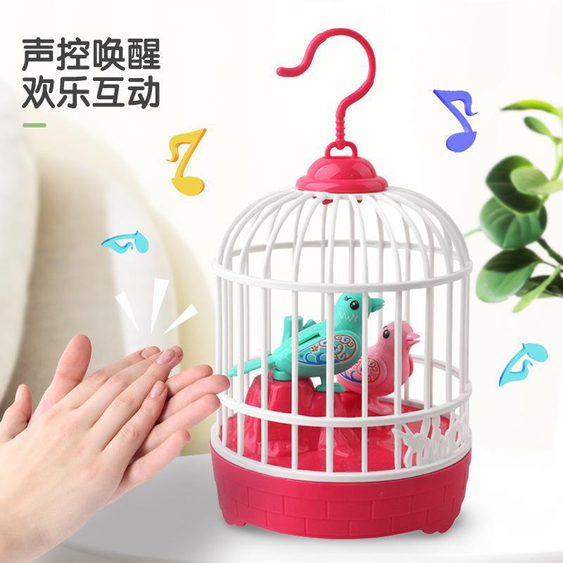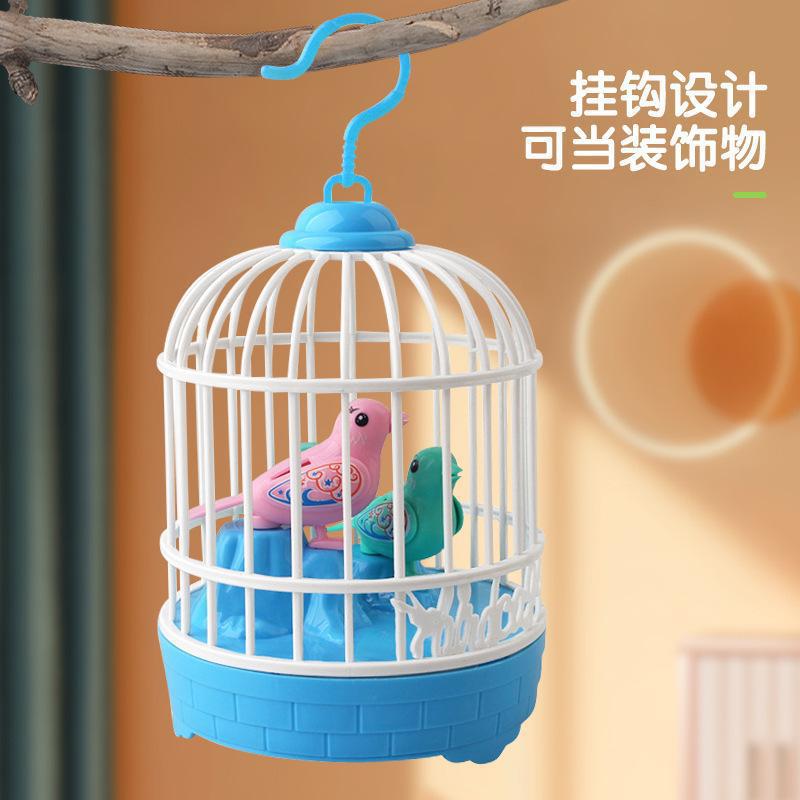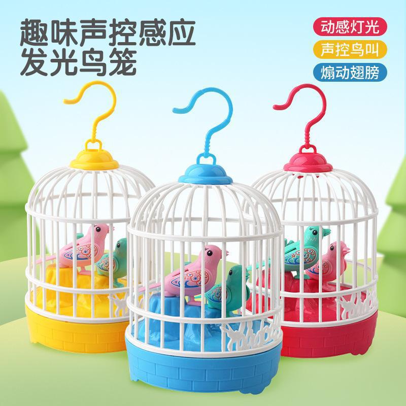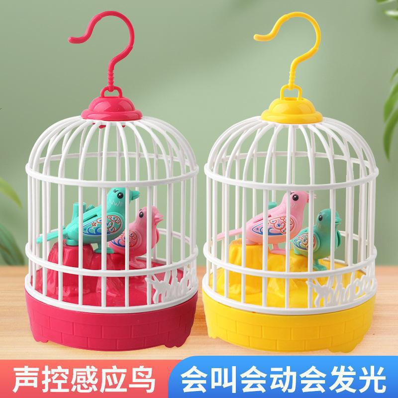 学舌声控感应鸟笼灯光电动仿真小鸟叫声儿童户外景点地摊玩具