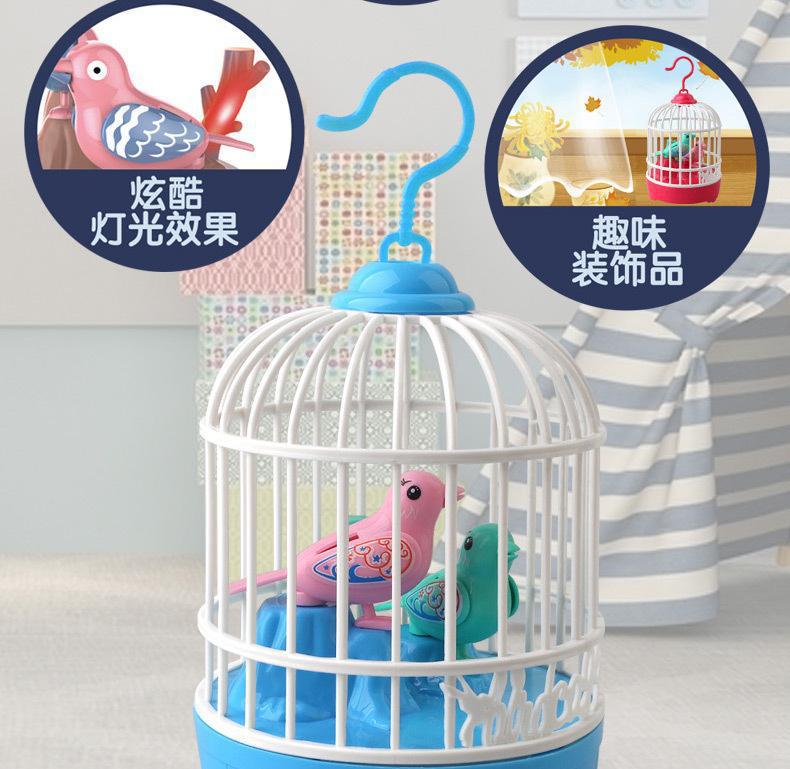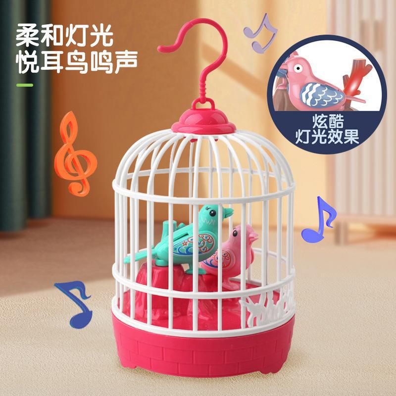 电动声控鸟笼小狗笼灯光仿真叫声儿童户外地摊玩具