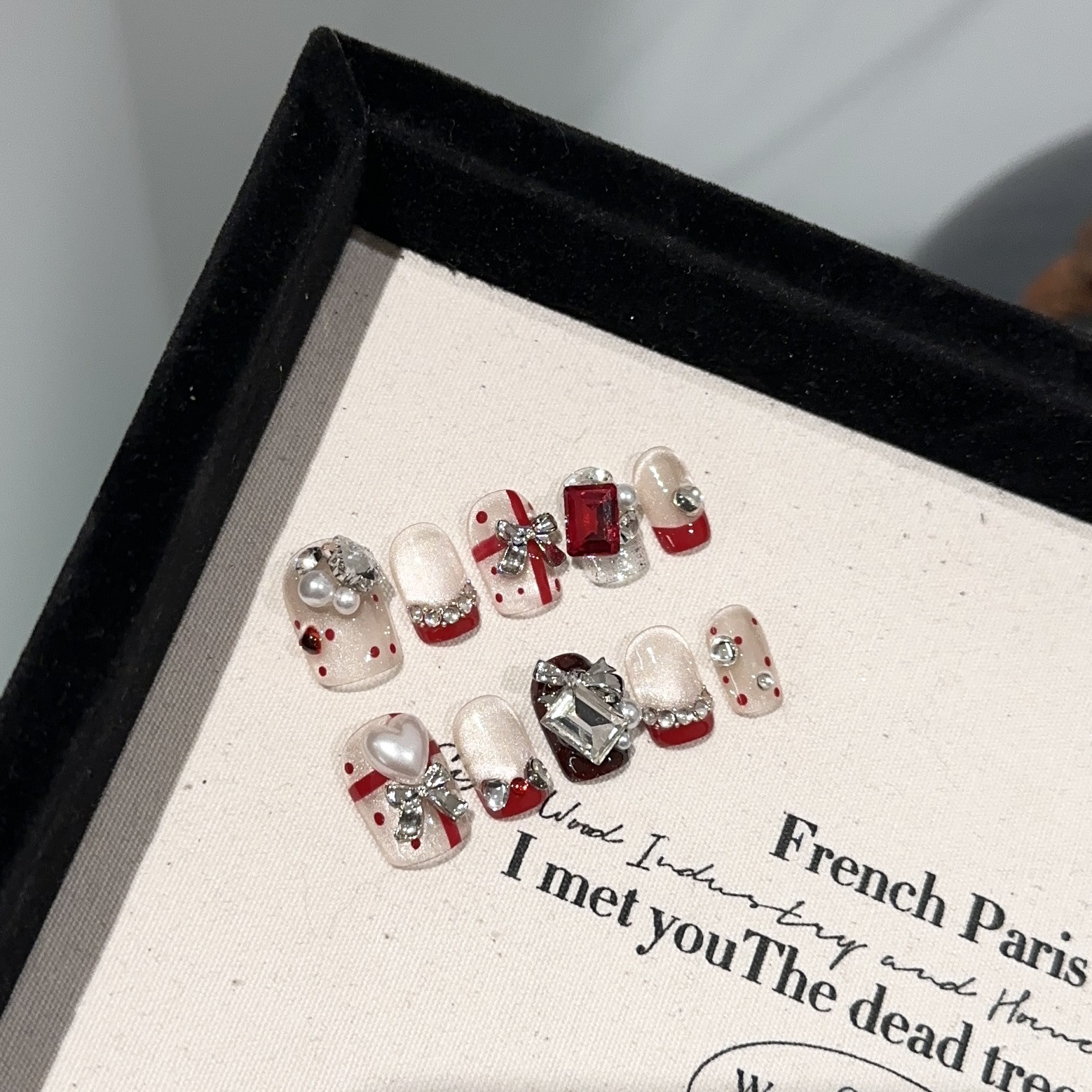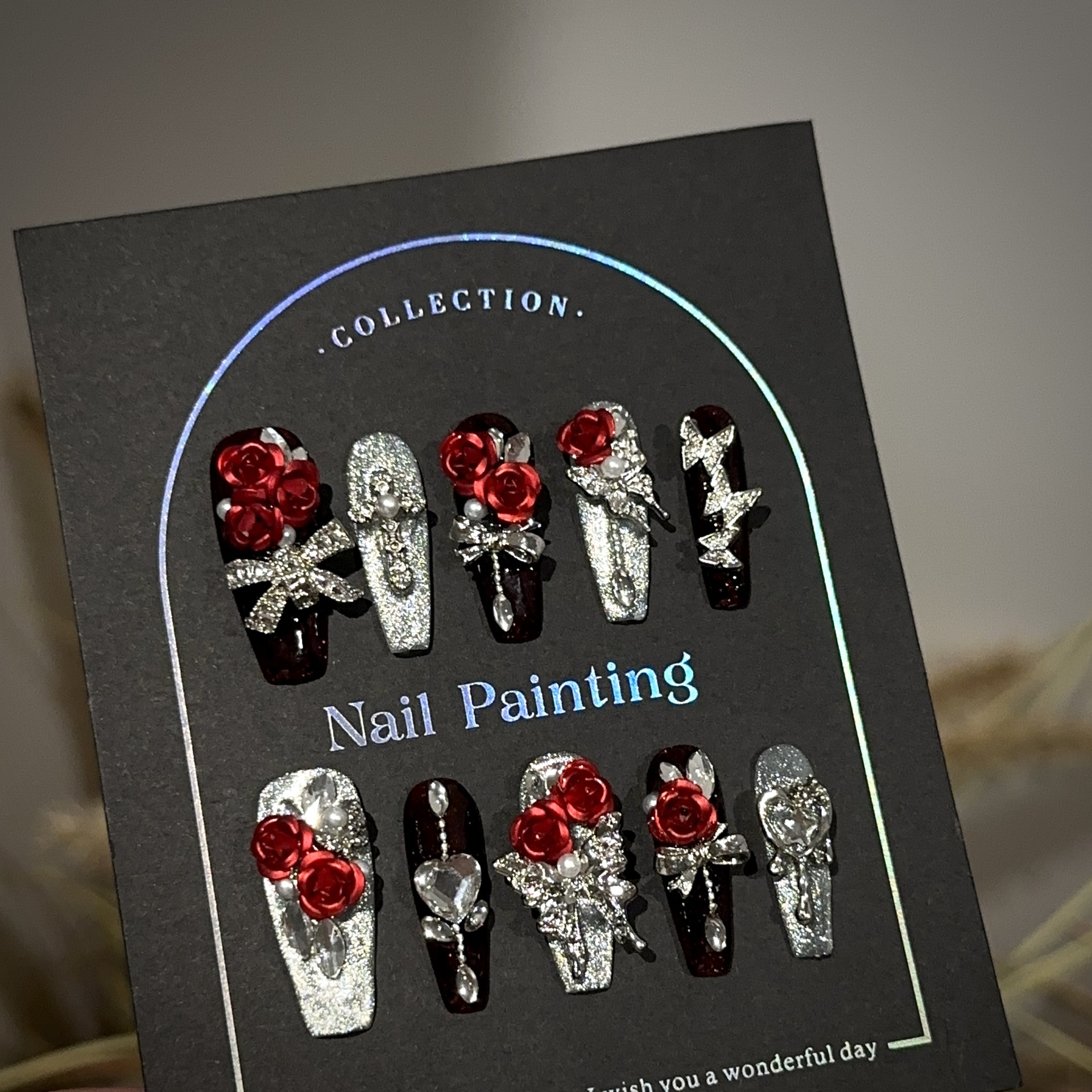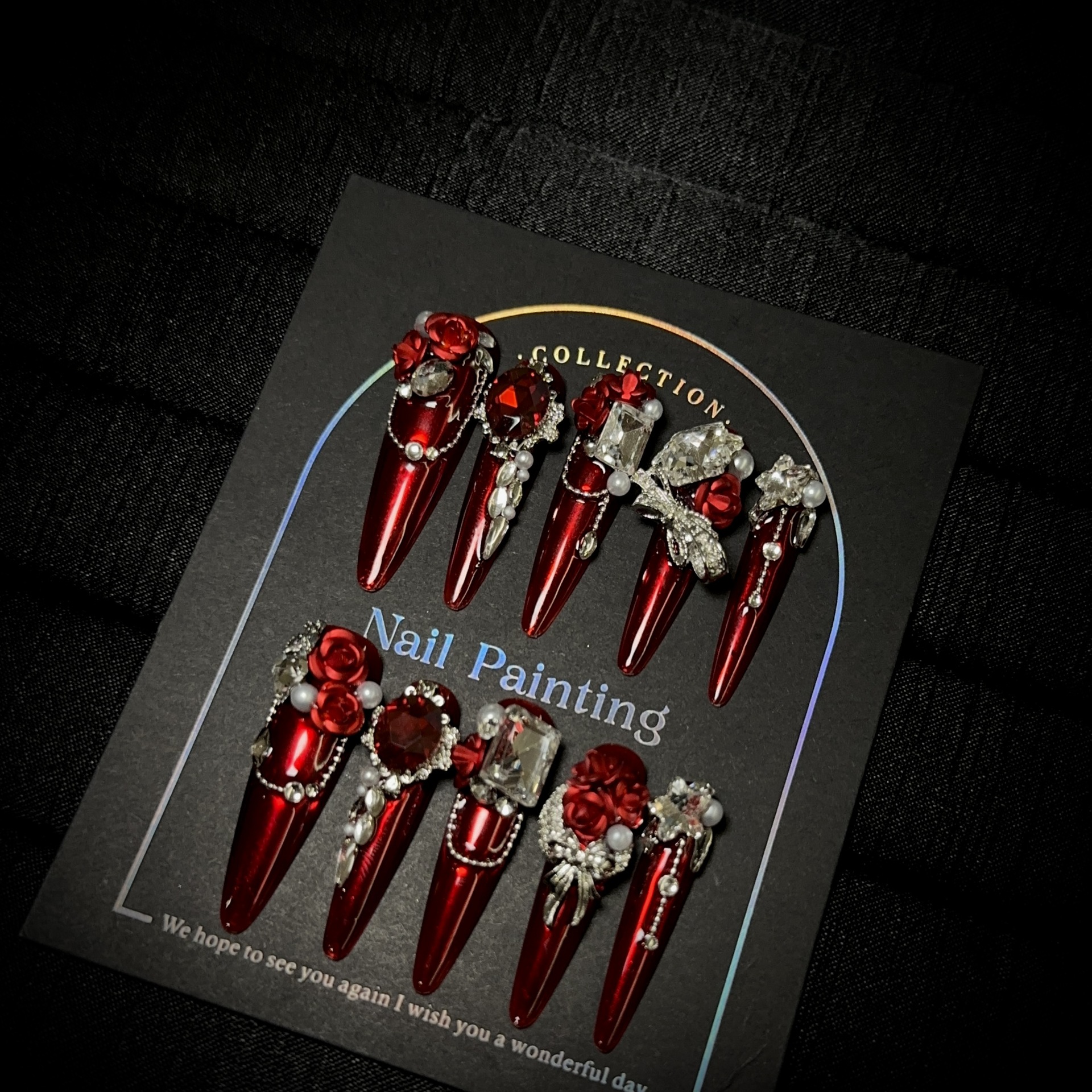 纯手工穿戴甲高级感秋冬酒红色猫眼美甲片奢华欧美重工假指甲贴片