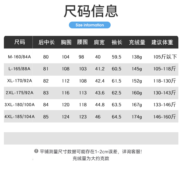 ダウン充填量