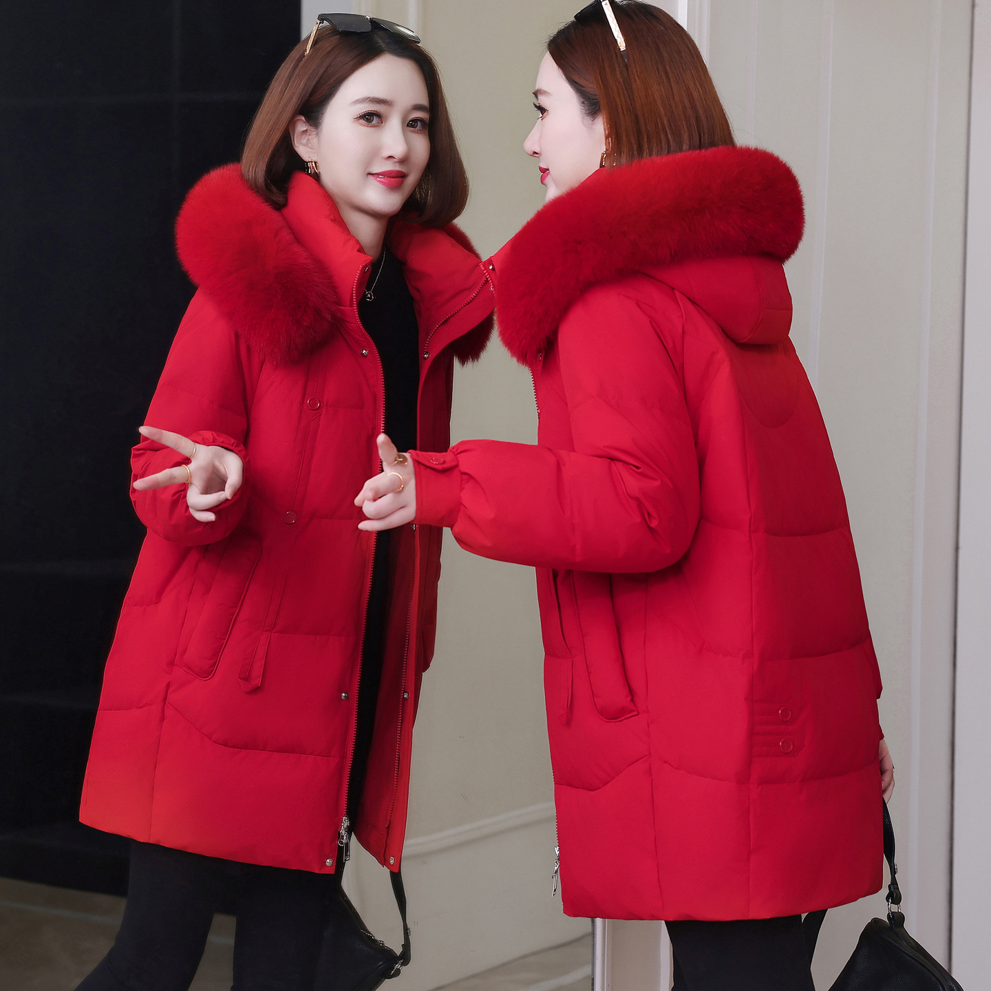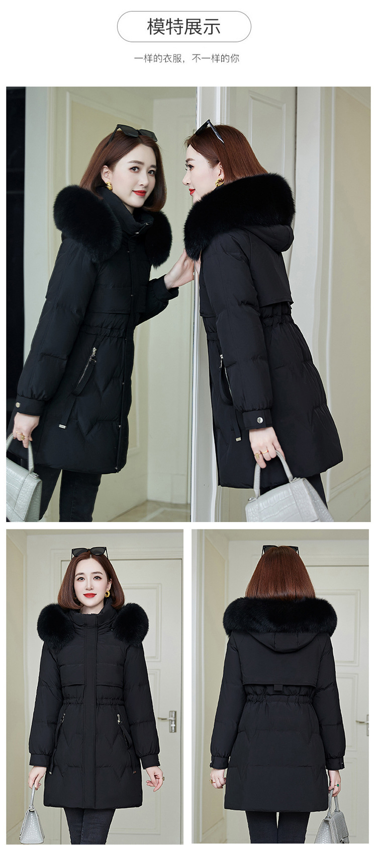 白い,ブラック(黒のファー襟),カーキ,ブラック(シルバーフォックスファー襟)