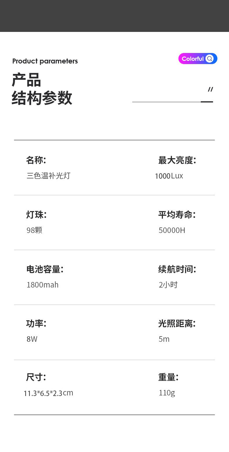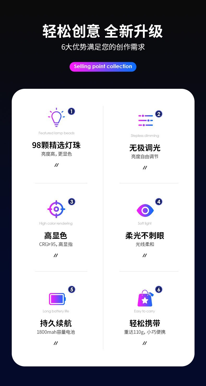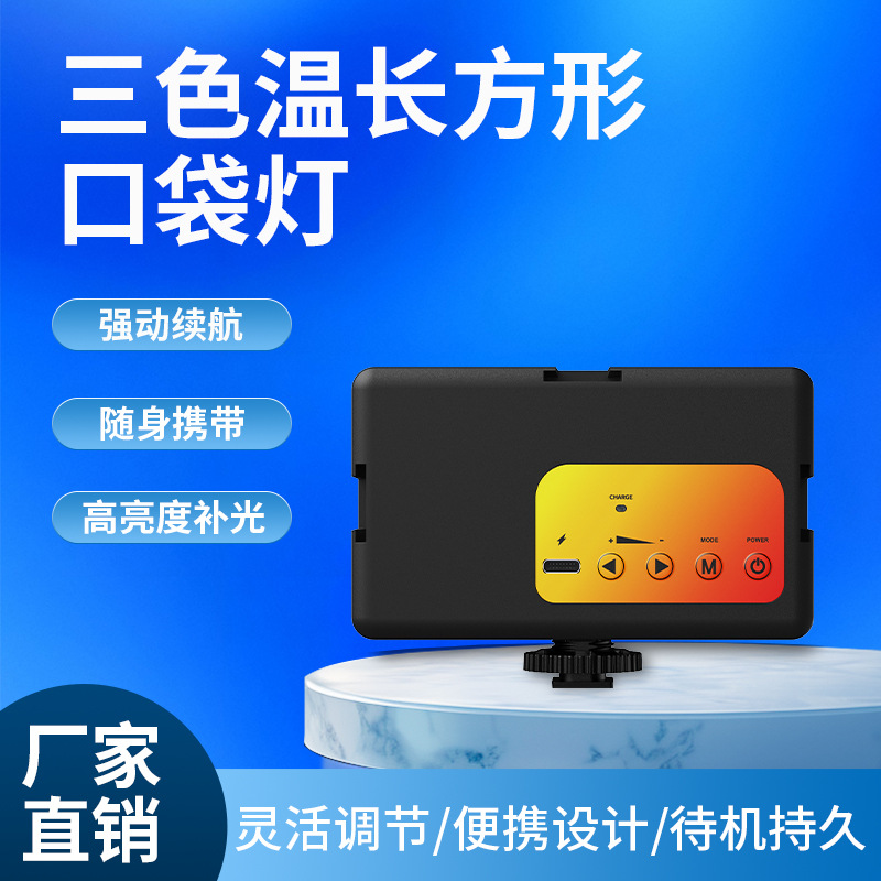 三色温长方形口袋灯长方形手机自拍补光灯直播手机便携摄影打光灯