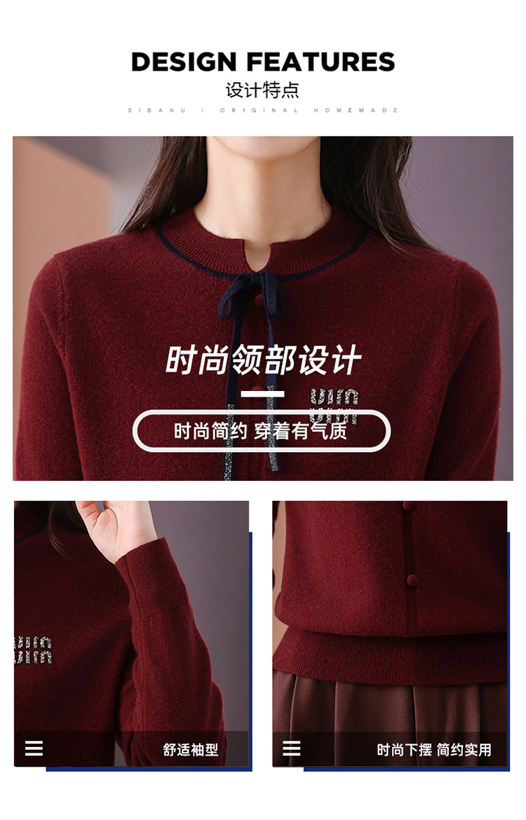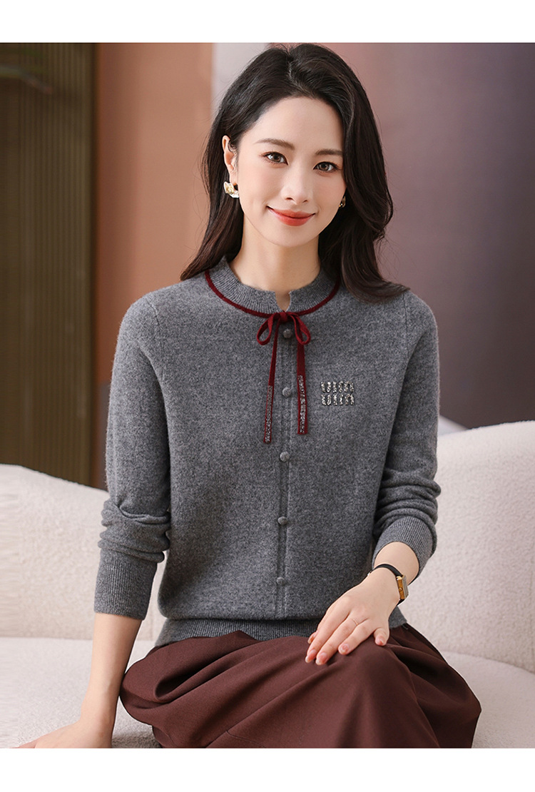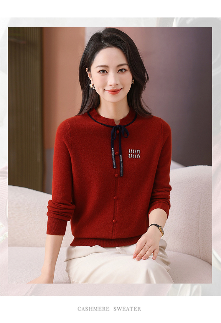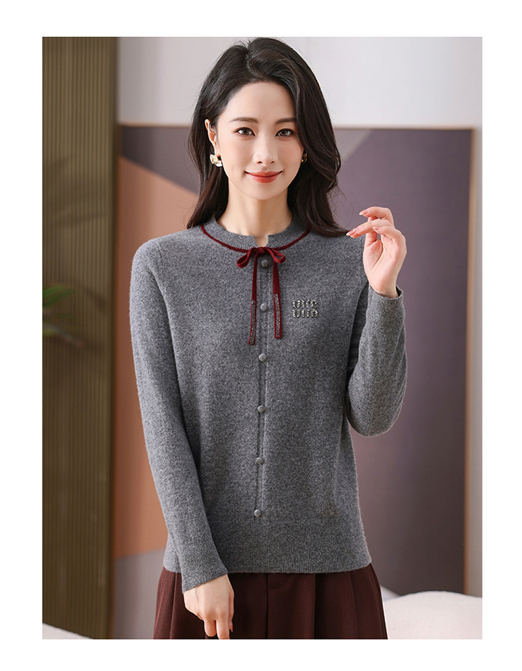 100純カシミヤの女性の洋気のお母さんのセーターのゆったりした丸首のウールの底のシャツは年齢を減らして上着の新型を掛けます。