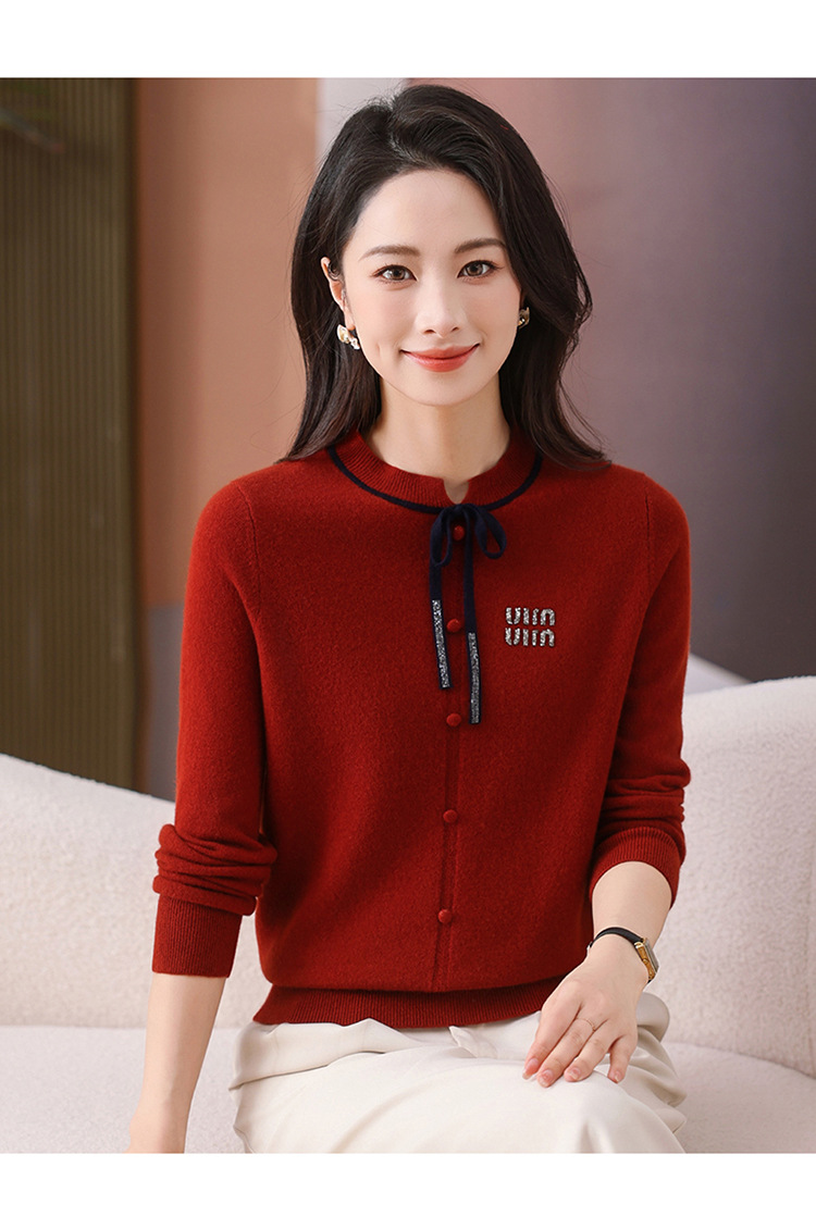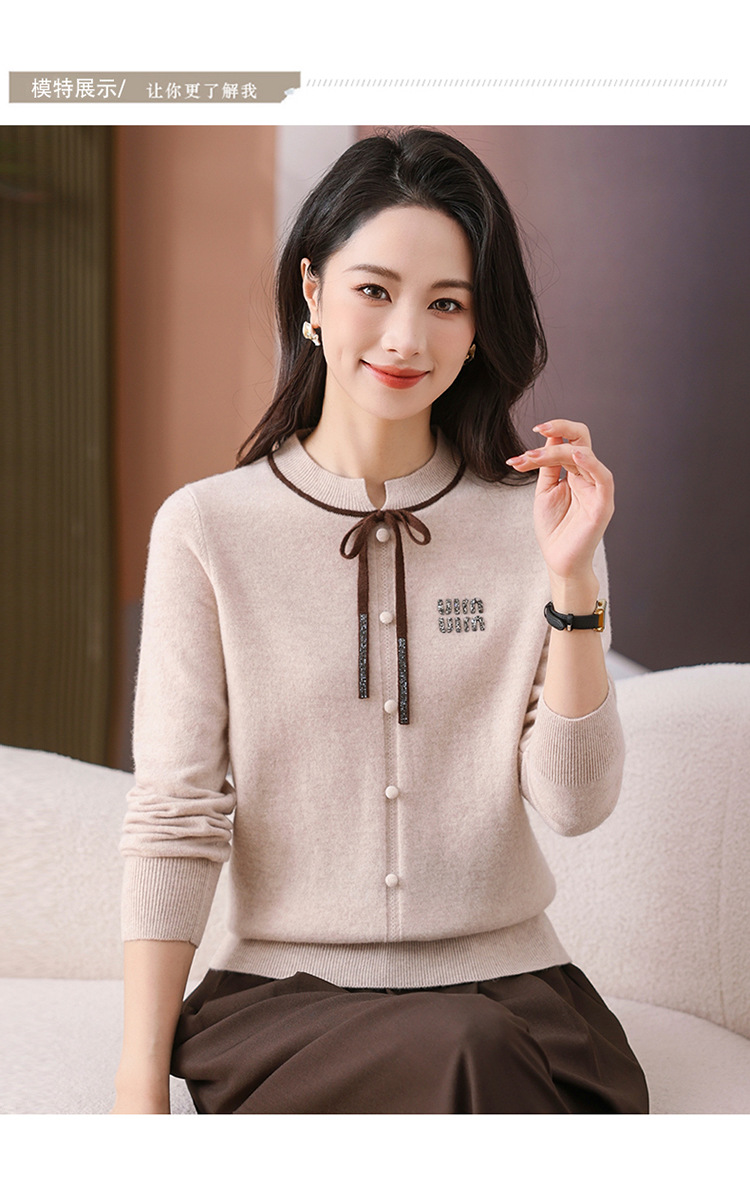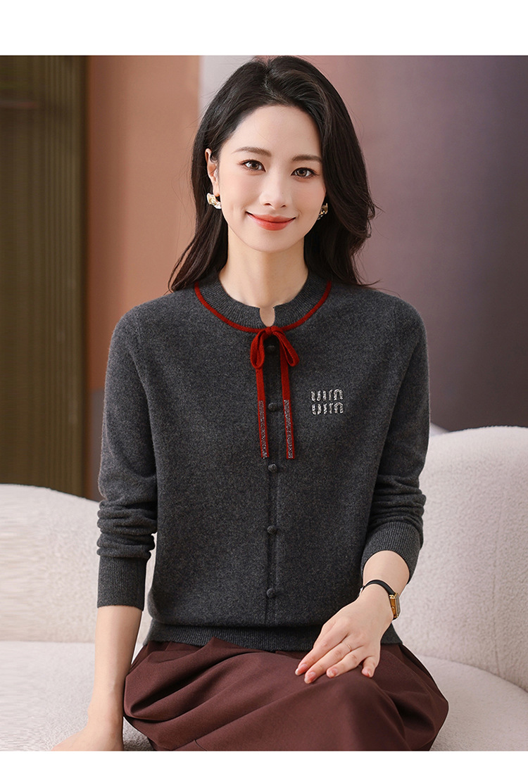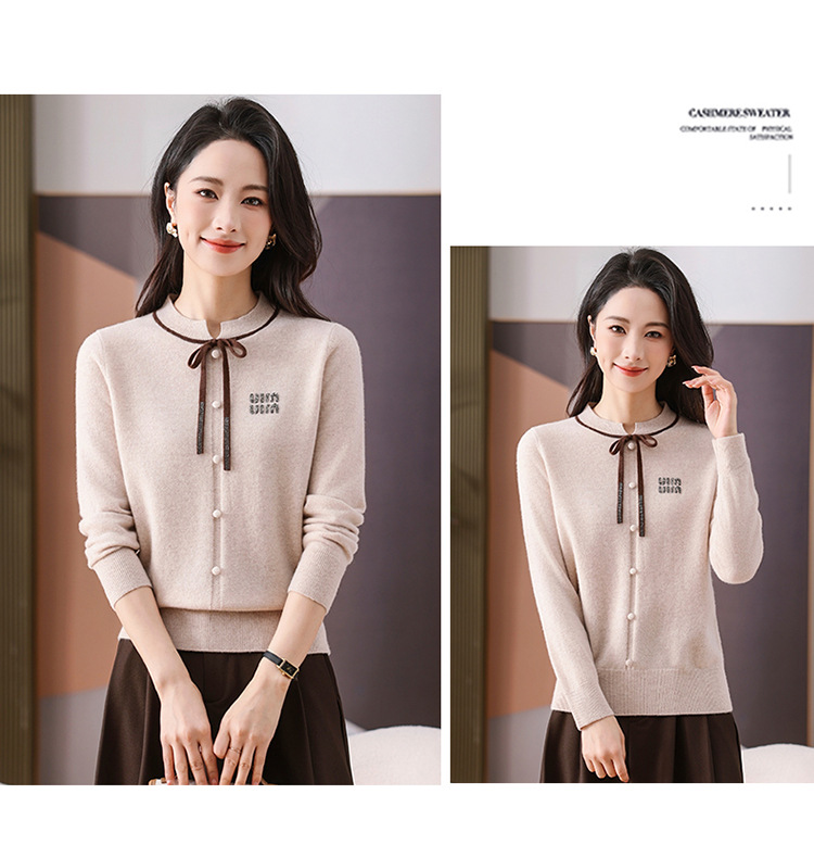 100純カシミヤの女性の洋気のお母さんのセーターのゆったりした丸首のウールの底のシャツは年齢を減らして上着の新型を掛けます。