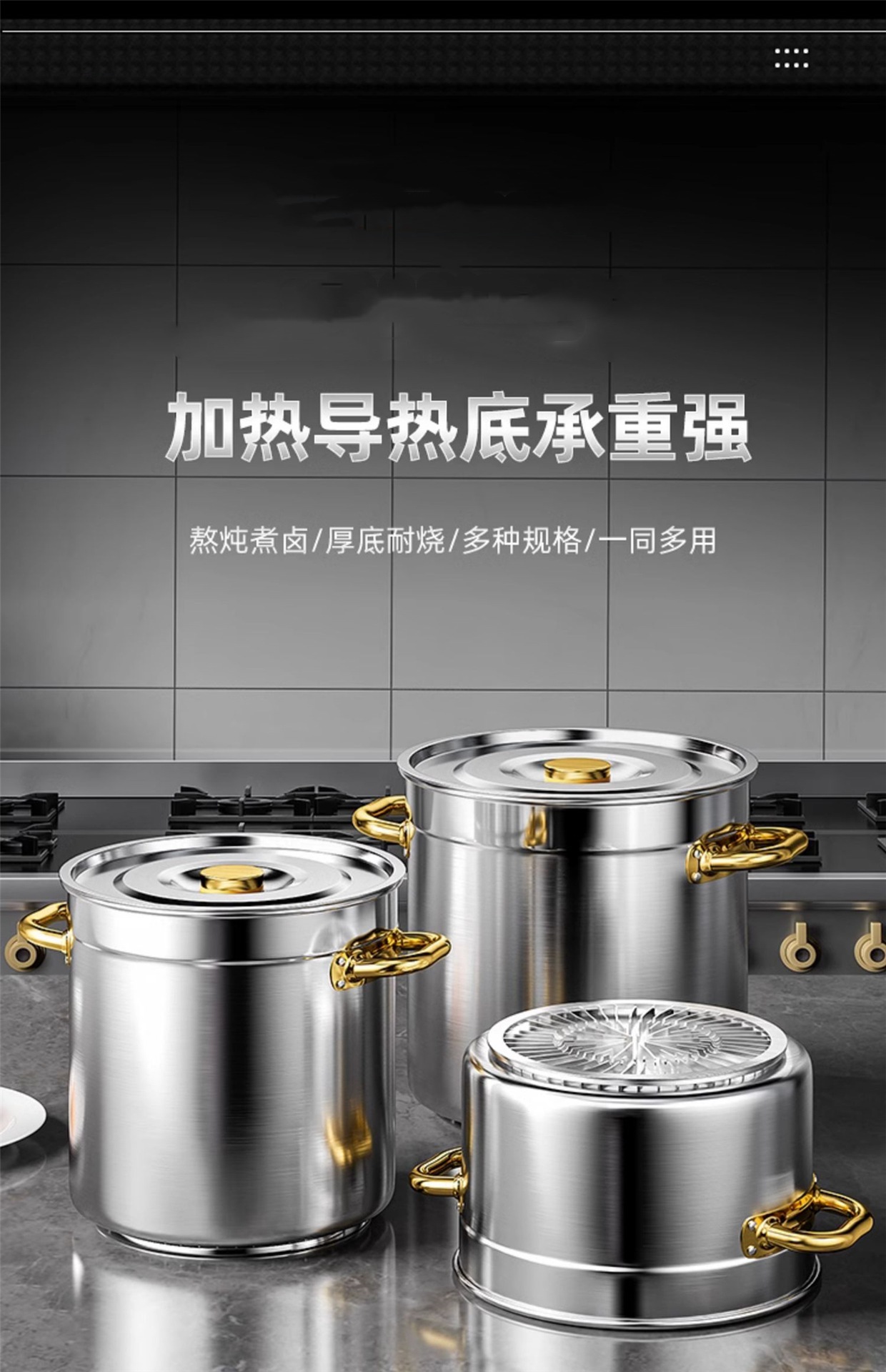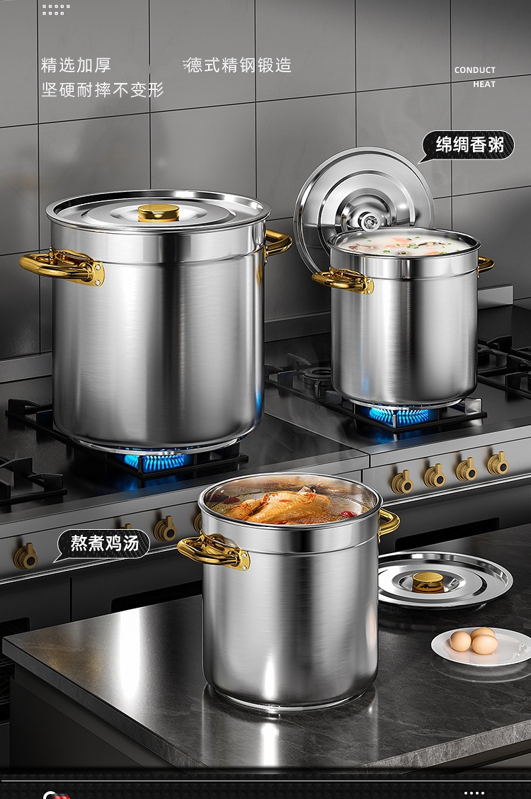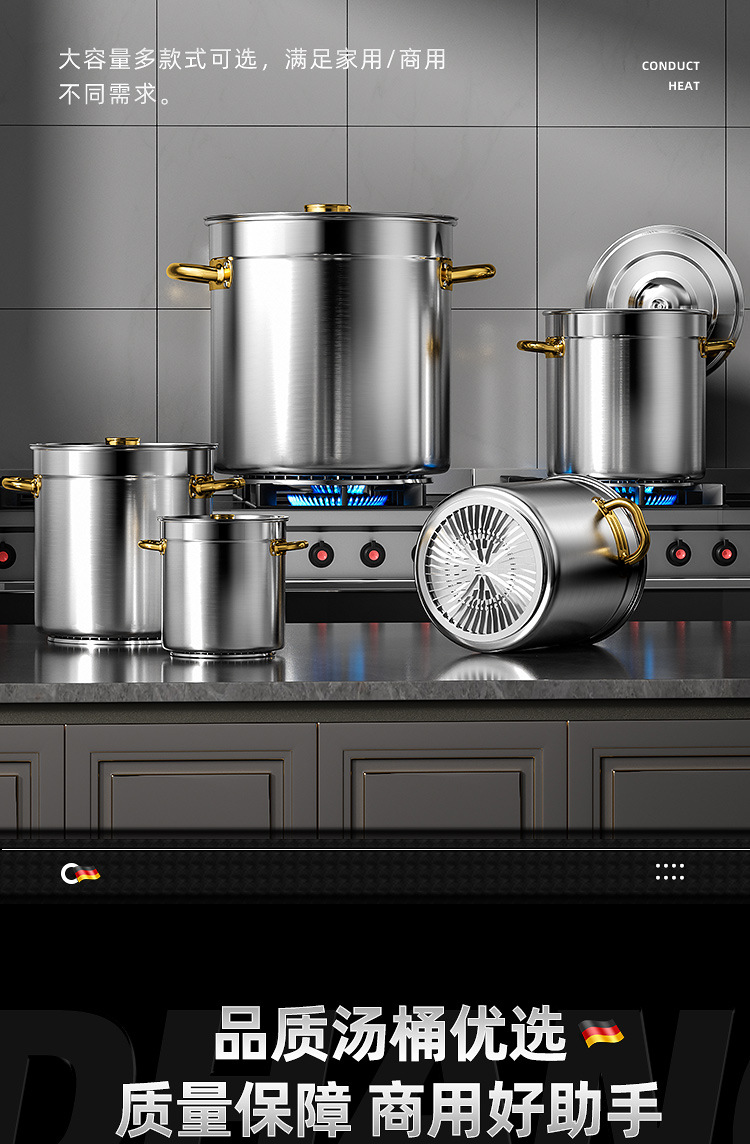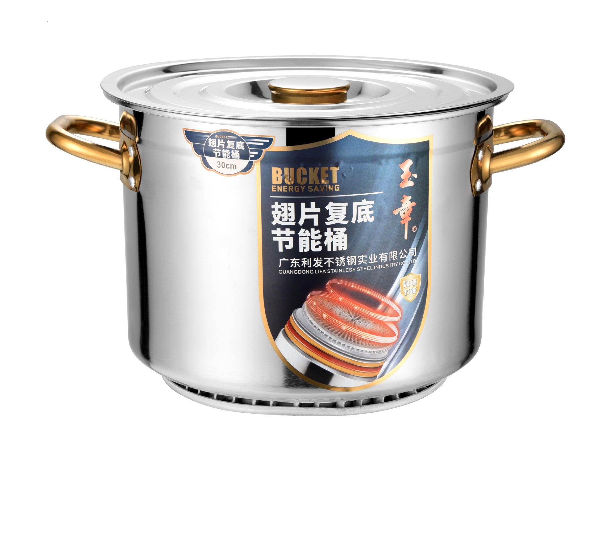複合底フィンバケットポット、蓋付き熱収集バケット、ステンレス製マリネバケット、ガス省エネバケット、業務用大型スープバケット、スープポット