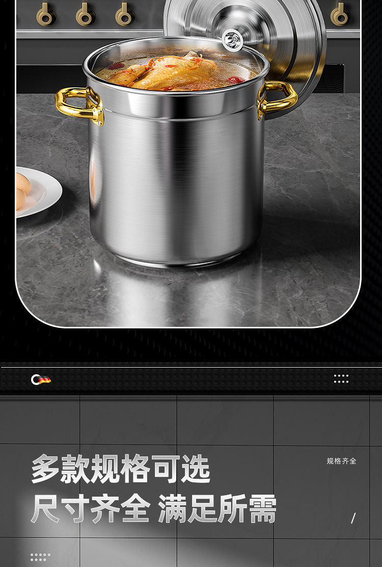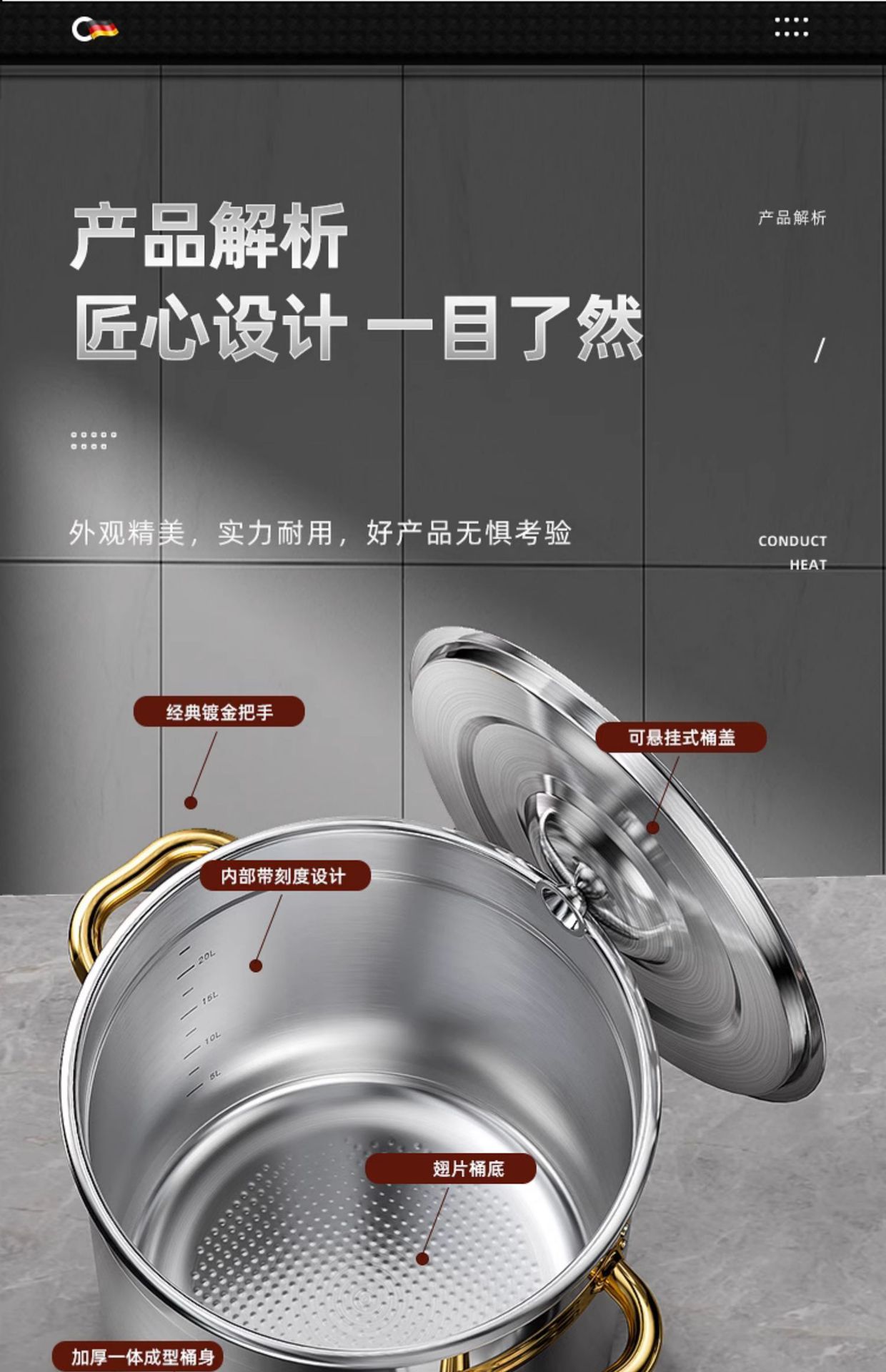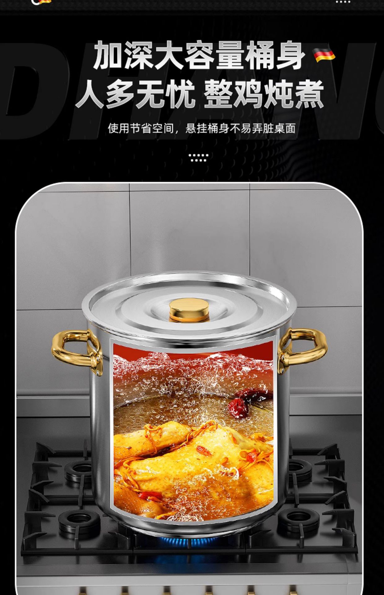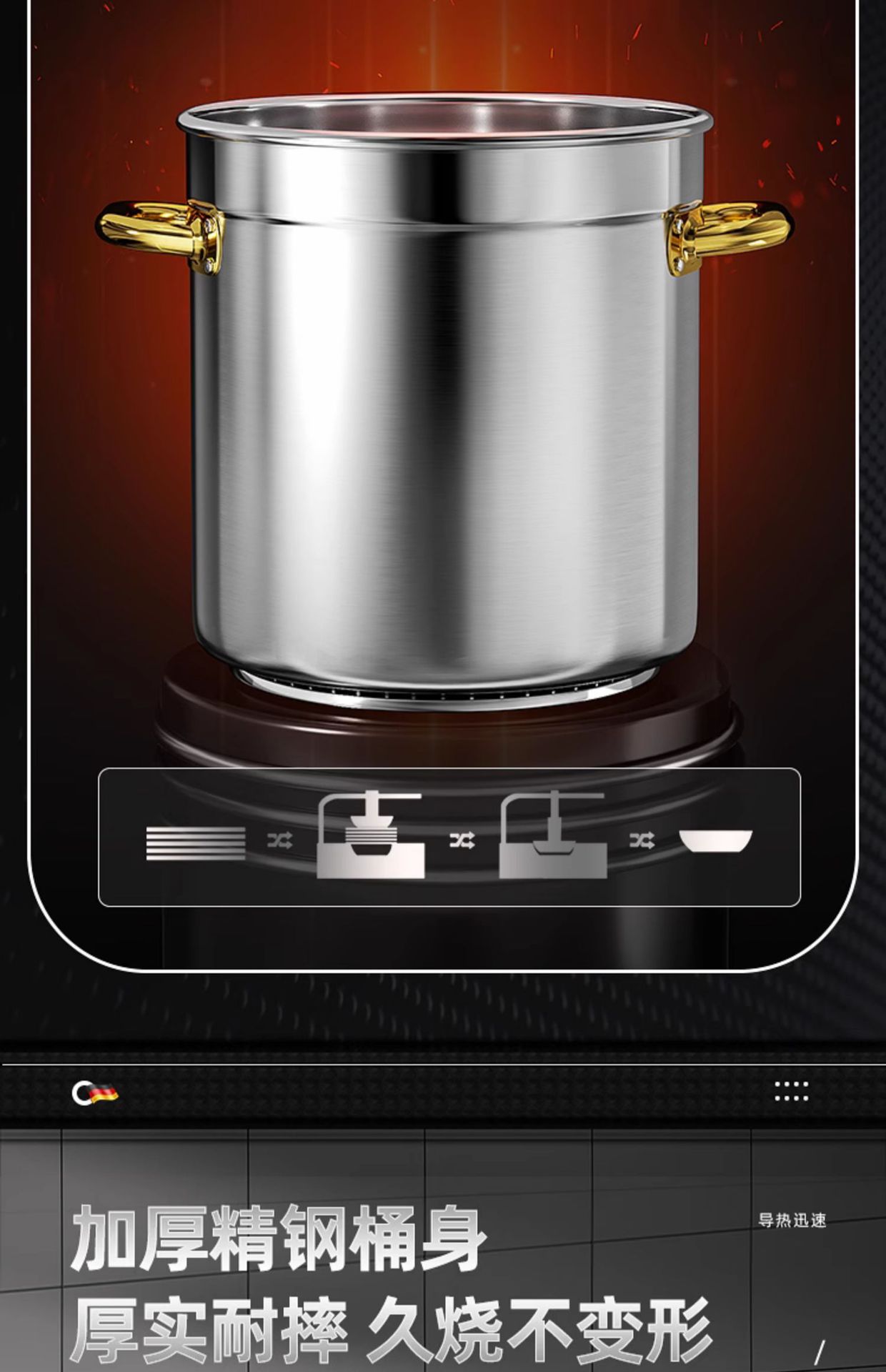 複合底フィンバケットポット、蓋付き熱収集バケット、ステンレス製マリネバケット、ガス省エネバケット、業務用大型スープバケット、スープポット