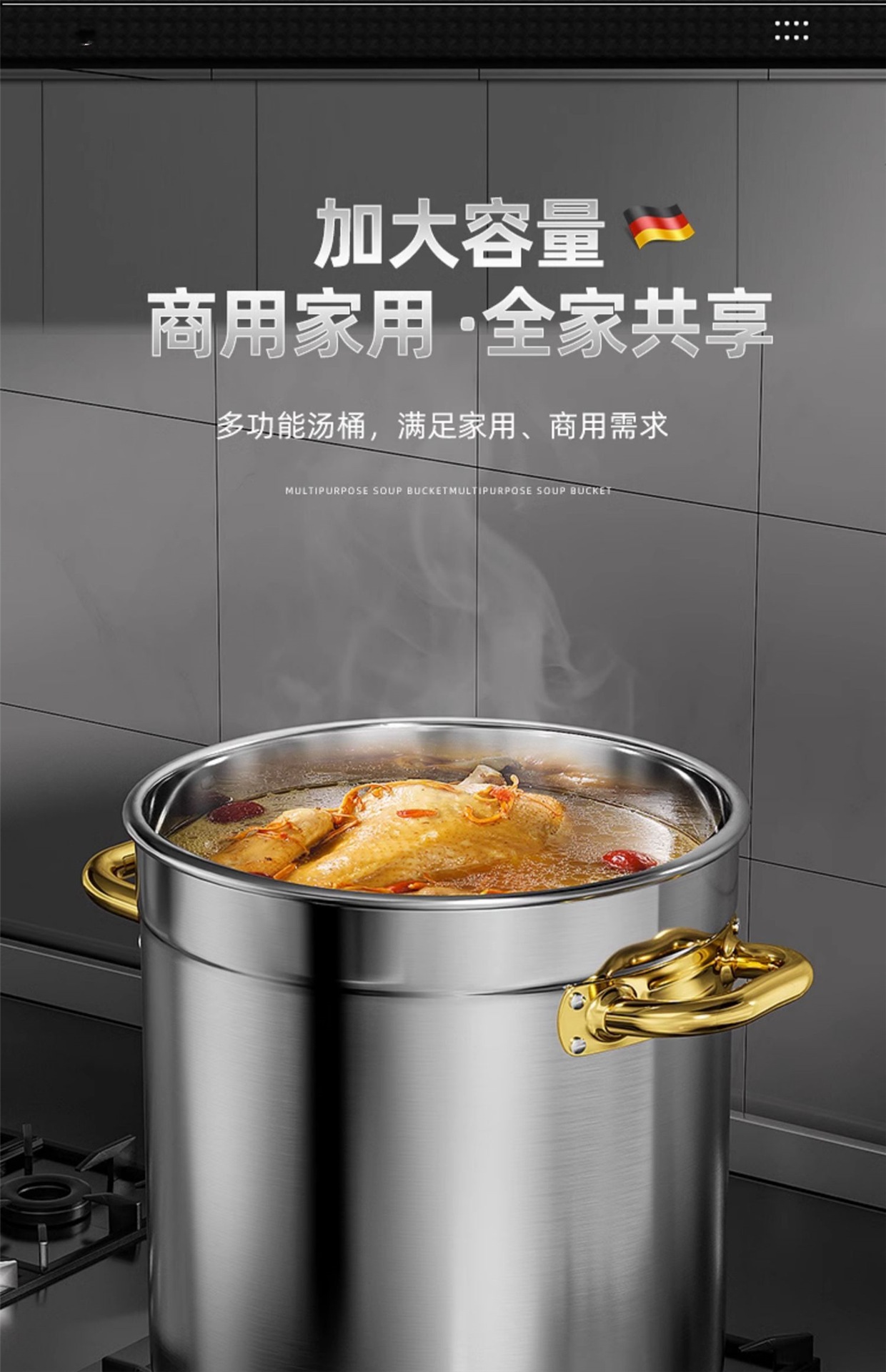 304ステンレスバレル両耳蓋付きスープバレル耐久性大容量食堂貯水バレル食堂商用スープ鍋バレル