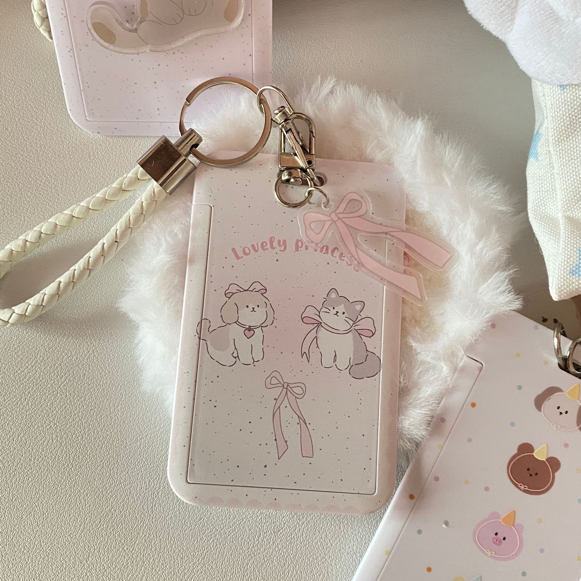 オリジナルかわいい子猫スライド式カードカバー追星愛豆小カード保護カバー学校カードバスカード収納カバー