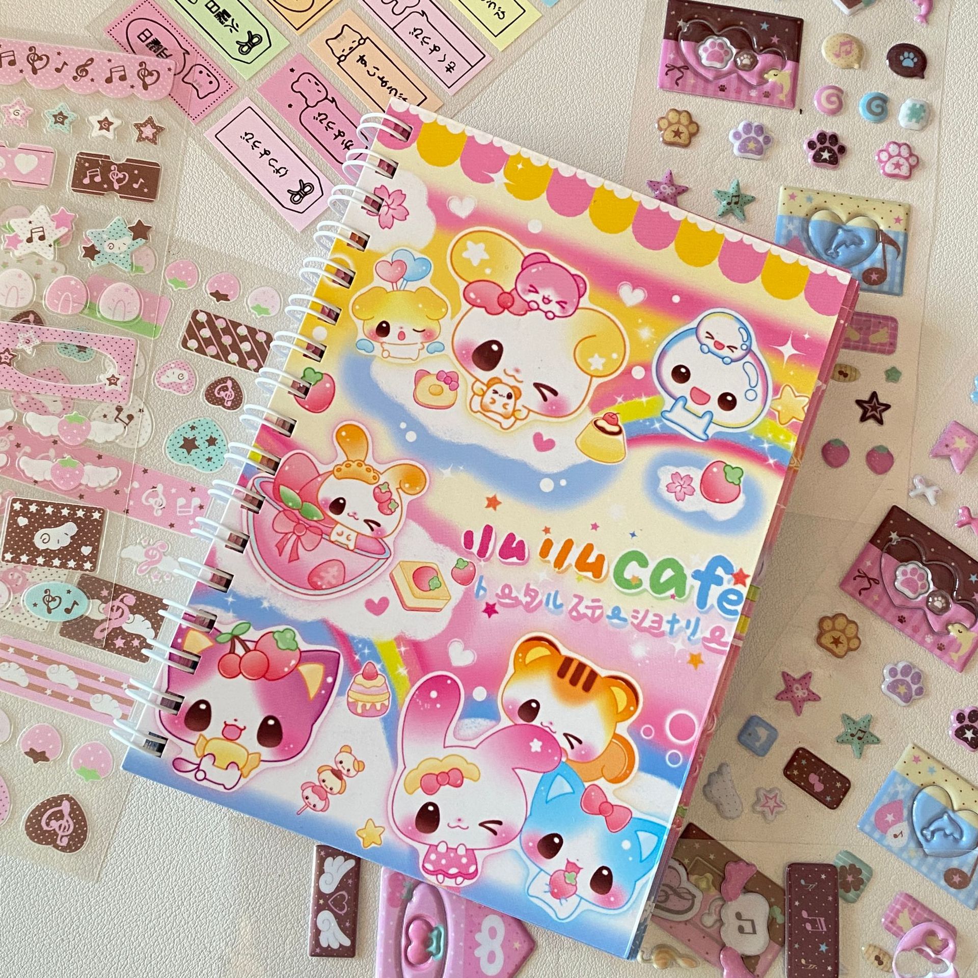 原创日系平成风线圈笔记本A6古早彩虹小兔横线学生记事本手帐本