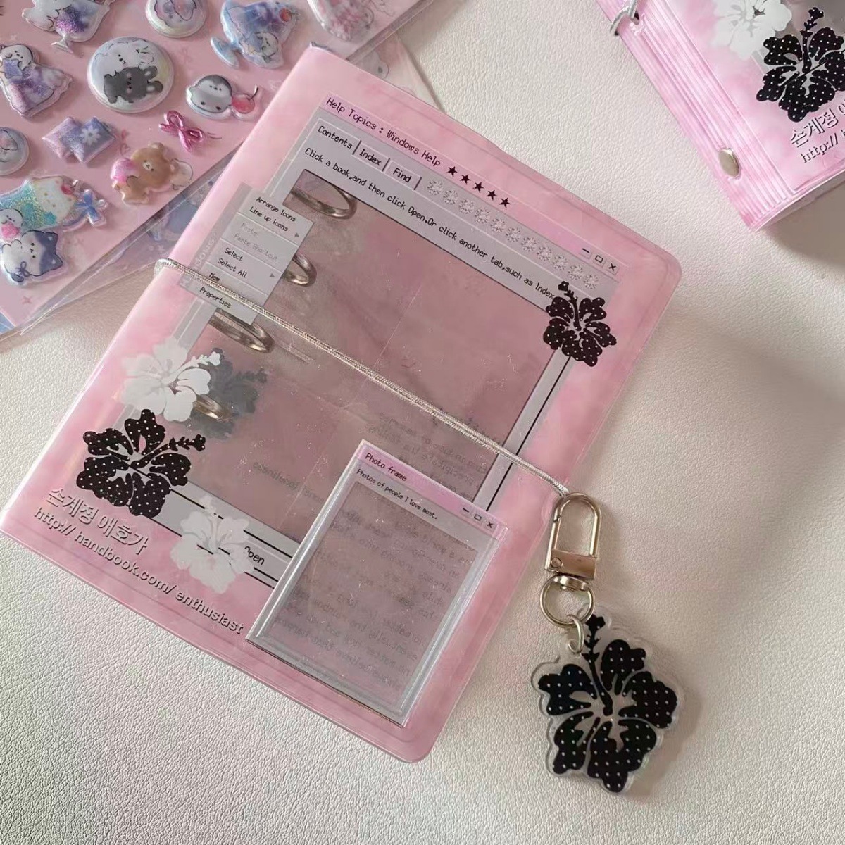 新款M5扶桑花透明活页手账本+内页PVC软皮可爱活页相册
