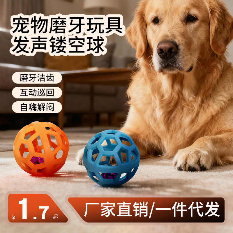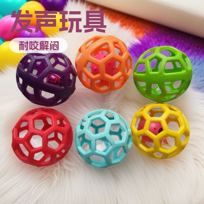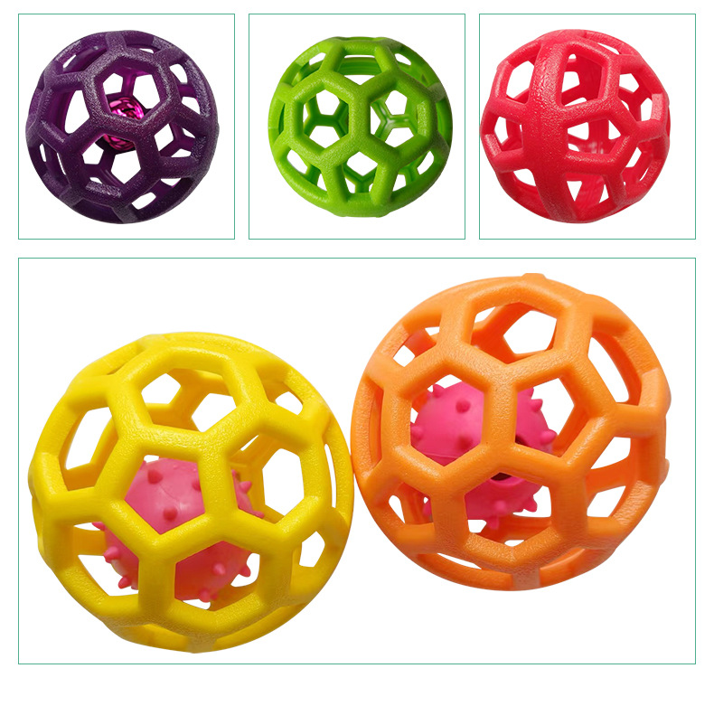 アマゾンの爆発的な子犬のおもちゃのボールの透かし彫りTPR弾力的な音のボールの鈴のペットのおもちゃのボールの卸売り