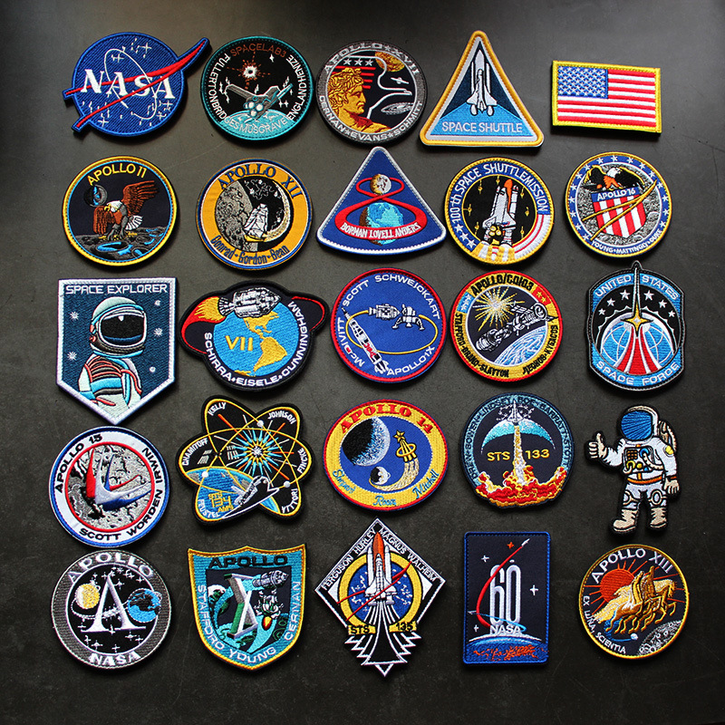 简睿跨境货源刺绣阿波罗航天太空徽章魔术贴臂章可缝补丁刺绣徽章